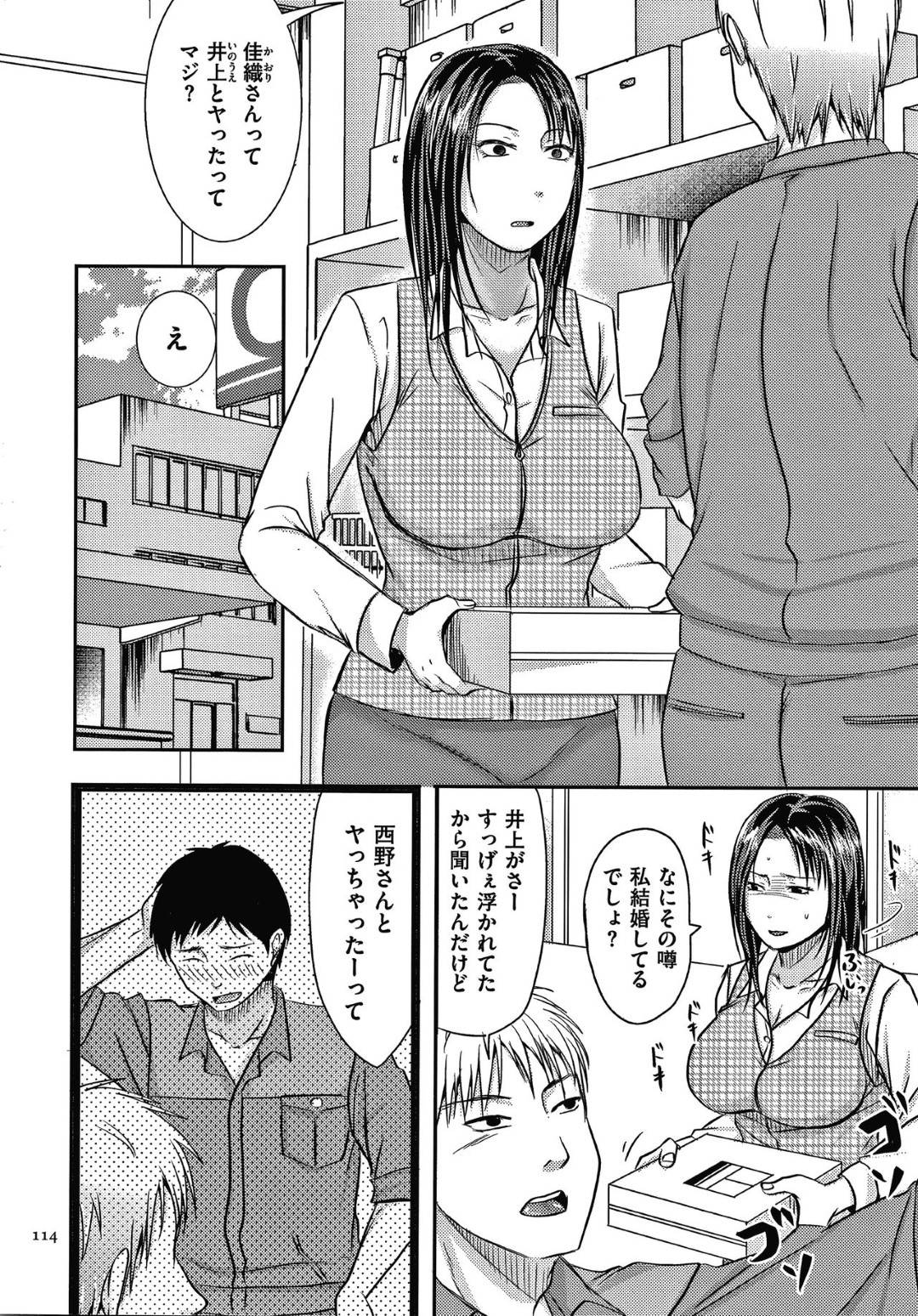 【エロ漫画】告白してきた職場の年下男子とヤッたことが知られた人妻は、別の男子にも言い寄られ生ハメ中出しセックス