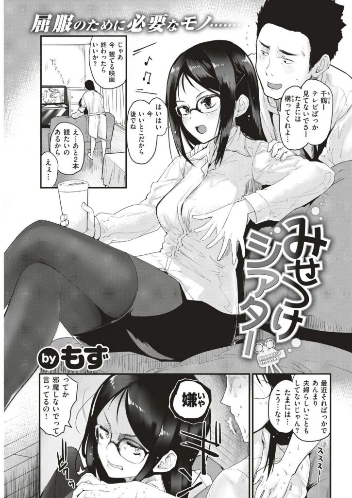 【エロ漫画】夫婦生活を面倒臭がる愛妻が欲しいホームシアターを与えガニ股バイブオナニーさせ大画面に映し出すエロ旦那!