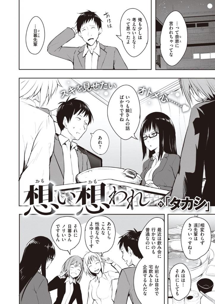 【エロ漫画】好きな相手に正直になれず酷いことを言ってしまうこじらぜメガネっ娘OLは、想いを寄せるバツイチの先輩の家に酔った勢いで押しかけセックスするも先輩は娘に悪いと気にかけるが本当はお互い想い想われているラブラブセックス