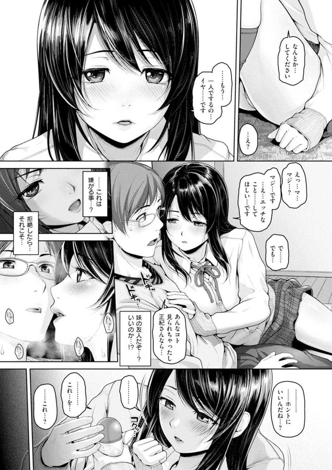 【エロ漫画】妹が突然、紹介してきた美少女は言い寄られる男が多すぎて、男性不審になり心を閉ざしていた。そんな彼女も性欲があり、オナニーでは限界を向かえて男にHを申し出るイキまくり中出しSEX
