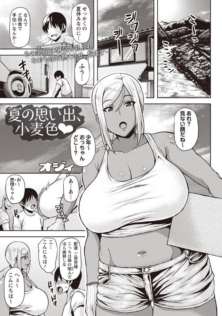 【エロ漫画】夏休みに田舎に来た少年を穴場の川に連れて行く日焼け肌の爆乳お姉さんが筆おろし青姦で刺激的な思い出作り!