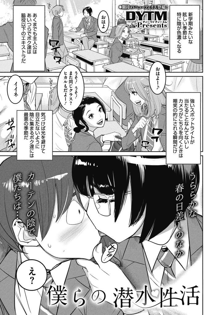 【エロ漫画】地味で目立たないメガネJKがクラスの陰キャ男子と校内で目立たないエッチの実験に励み学校一の美少女と3P乱交!