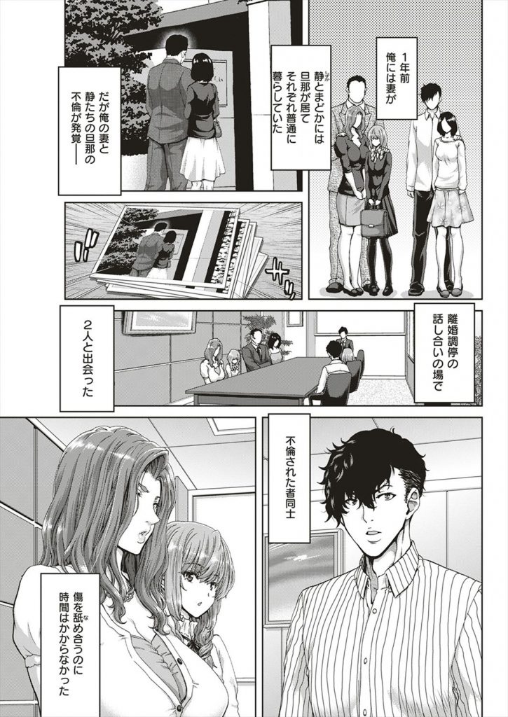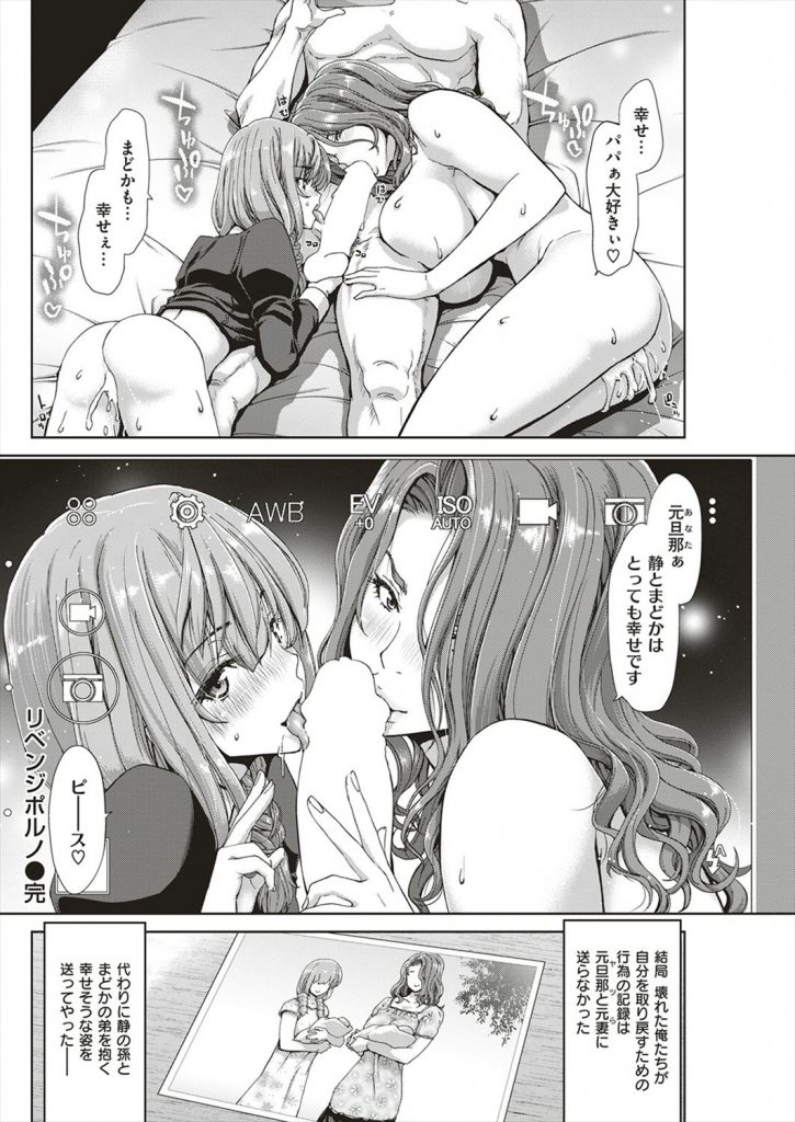 【エロ漫画】夫に不倫された母娘と妻に不倫された男が壊れた関係になりハメ撮りしながら3P親子乱交でポルチオアクメ!