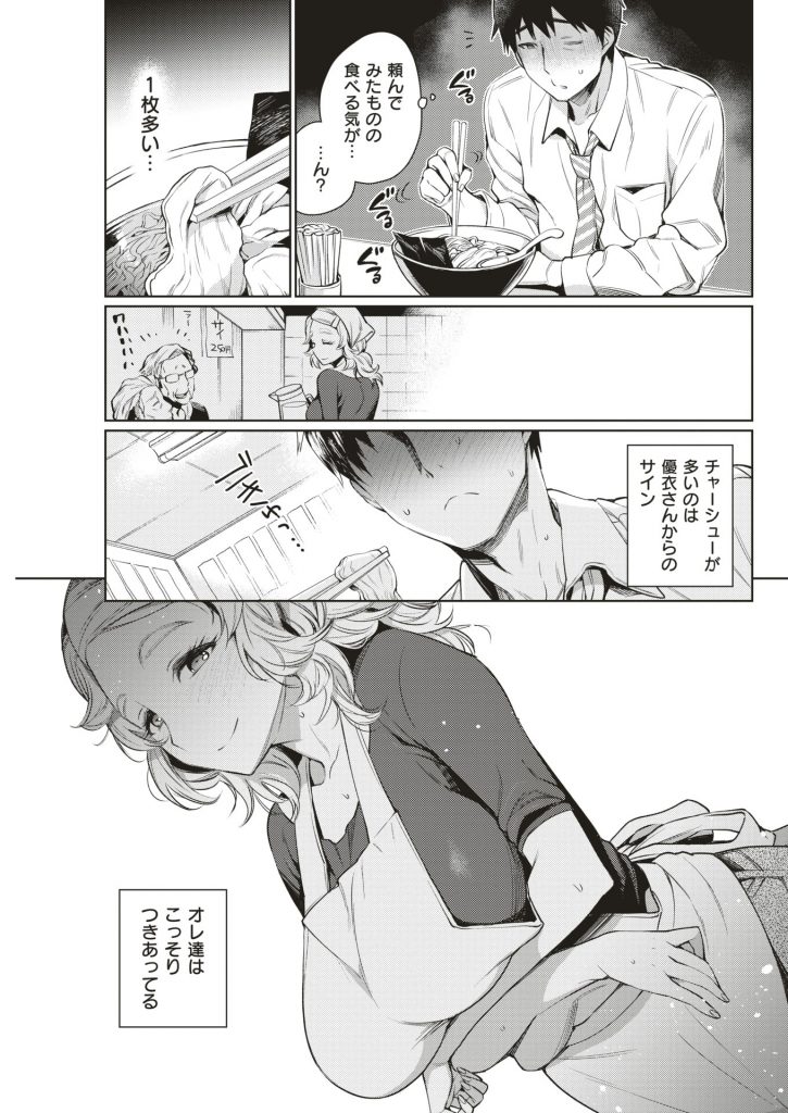 地元で親しまれる深夜まで開いているラーメン屋の女店主が付き合う彼氏にチャーシューの枚数で合図を送ると閉店後の店内で仕事に疲れた彼氏を慰めるように巨乳を吸わせながらチンポを扱き立たせてケツ穴舐めながら手コキする風俗嬢顔負けのテクニックで責め立て生ハメで激しく腰を振る彼氏の上に乗り騎乗位グラインドで深く挿入して受精アクメ!