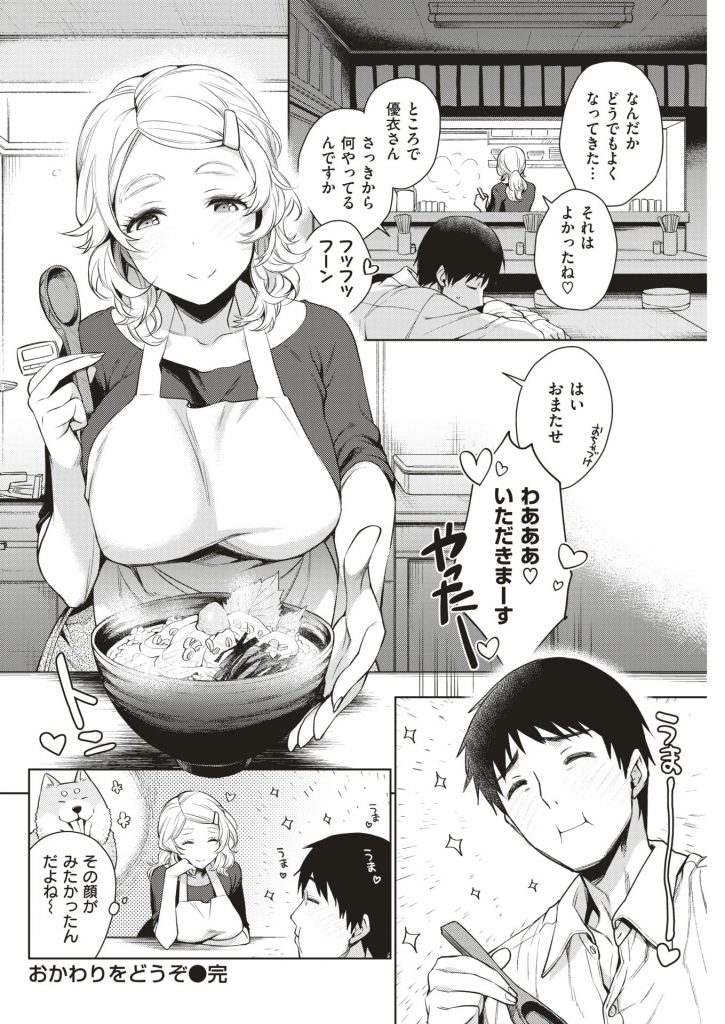 【エロ漫画】地元のラーメン屋の女店主が閉店後の店内で仕事に疲れた彼氏をケツ穴舐めながら手コキして生ハメ受精アクメ!