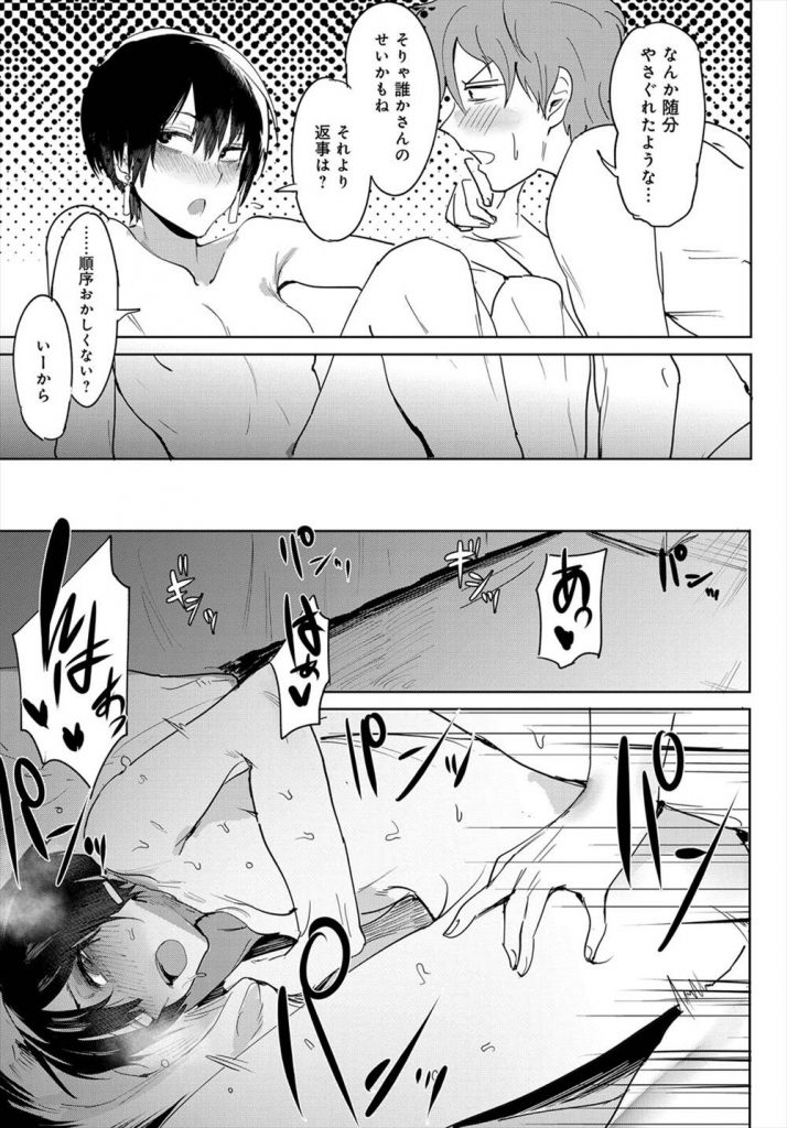 【エロ漫画】喫煙中に話かけてきたやさぐれたJDが昔告白されて返事出来なかった女性だと分かりラブホで七年越しのラブH! 先輩先輩・後輩 マイページに追加 マイページへ移動 サークルの飲み会を抜け出し外で煙草を吸ってるとクールでやさぐれた雰囲気のJDが忘れたライターを届けてくれる!世間話をして中学時代に告白されて返事出来なかった話をする男!男が後悔してると言うと遊びに連れて行かれラブホに行く!JDは服を脱ぎ出しタバコ臭いキスをして男が訪ねると返事出来なかった女性だと分り七年越しの恋が実りラブH! 関連エロマンガ 全裸で鎖につながれ飢えた男性受刑者に囲まれ犯される元アイドルの死刑囚。バイブをねじ込まれ男たちにおっぱいを揉まれながら中出しレイプ 先生に薬物を飲まされ調教される彼氏とラブラブなJK。乳首ピアスをされて肉便器にされると彼を忘れて先生のチンポで堕ちてしまう 夫にバイブでイカされまくる義母。欲求不満な彼女と夫に隠れてセックスをしまくる息子はJKの義妹ともお風呂場でいちゃラブセックスする 義母の命令で親父たちに輪姦される姉。乳首を舐められ弟に無理やりクンニさせてザーメンまみれで中出しレイプされる 街中で通る男性にオナニー鑑賞をせがまれるドSなJDお姉さん。ディルドでフェラを強要させてヒールでアソコを踏み潰し逆レイプで中出しさせてあげる 住み込みで働く男性を性処理として働かせる欲求不満な人妻。セックス依存症のの母娘たちは彼とセックスしまくり中出しする ピアノレッスンで講師にセクハラを受け続けるお姉さん。後ろからおっぱいを揉まれ手マンをされると興奮してしまった彼女は講師のチンポをフェラして生ハメセックスをする 家主の親父にご奉仕状況される喫茶店を経営するメイド姿の未亡人。パイズリやクンニをして立ちバックで生ハメされて犯されアヘ顔で中出し 先輩先輩・後輩 コメントを残す コメントをキャンセル コメント 名前 email confirm* post date* 漫画に関係の無いコメントや荒らし行為はご遠慮ください。
