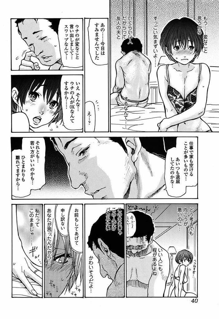 【エロ漫画】夫婦交換をした巨乳若妻が盛り上がる旦那と友達に圧倒され別室スワップで初めての他人棒に感じ膣出しアクメ! 5P69シックスナインみよし喪服目隠し青姦 マイページに追加 マイページへ移動 刺激的な遊びと誘われてホテルで夫婦交換をしたショートカットの巨乳若妻が目の前で恥ずかしげもなく盛り上がる旦那と友達に圧倒され相手の旦那とたじろいでいると気を利かせて別室スワップにして貰い二人きりになると旦那に当てつけられた仕返しにとオッパイを愛撫されるとお返しフェラでパイズリ奉仕して初めての他人棒に感じ膣出しアクメ! 関連エロマンガ 近所で評判の高い整体にいくことになった人妻。オイルで乳首責めや手マンをされて身体が疼いてしまい家でもオナニーを続ける彼女は牝堕ちして中出し絶頂アクメ堕ちする 兄弟夫婦でパートナーを交換して肝試しをする人妻。仕掛けられた悪戯で気絶をしてしまった彼女に手マンや乳首責めをして中出しセックスをされる 【エロ漫画】夫が出張中の人妻が隣人のサラリーマンと酒を呑み酔って彼女と勘違いした男と他人棒セックス! 不倫相手に同僚を誘われ集団で犯されちゃう人妻。乱交プレイで乳首責めやクンニで中出し快楽堕ちしちゃう 同じ階に住むショタに階段でオナニーをしているのを見られてしまう若妻。口止めにフェラをしてあげると興奮し生ハメ中出しセックスまでしちゃう 【エロ漫画】夫婦で店してる人妻が雨宿りしてると常連の紳士と出会い単身赴任が終わる最後のお願いで別れの浮気セックス! 【エロ漫画】一途な嫁が短小早漏な旦那の入院中に会社の色男同期に脅迫され執拗な愛撫と過去最大の巨根で焦らされ生殺し! 【エロ漫画】夜の夫婦生活がご無沙汰な人妻キャリアウーマンが出来の悪い部下に社内で全身を舐めつくされて不倫セックス! 5P69シックスナインみよし喪服目隠し青姦 コメントを残す コメントをキャンセル コメント 名前 email confirm* post date* 漫画に関係の無いコメントや荒らし行為はご遠慮ください。