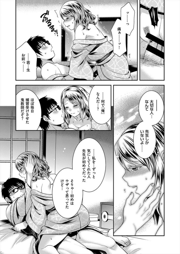 【エロ漫画】嘘を付いて大好きな先生と二人で来た卒業旅行で巨乳教え子が逆夜這いをかけ肉棒を扱き想いを伝えてラブエッチ! CAみよしムチムチ友達の母親愛液・マン汁 マイページに追加 マイページへ移動 大好きな先生と二人きりで卒業旅行に行く為に嘘を付いた巨乳の教え子!来る予定だった皆を病欠と言い恋人っぽいデートを満喫する!旅館も当然同じ部屋で先生が布団を離して眠りにつくと逆夜這いをかけて肉棒をシゴき処女をあげると言い自ら騎乗位で生ハメする!真実を先生に話て想いを伝え身体を委ねると激しくピストンされいちゃラブで膣内射精! 関連エロマンガ 全裸で鎖につながれ飢えた男性受刑者に囲まれ犯される元アイドルの死刑囚。バイブをねじ込まれ男たちにおっぱいを揉まれながら中出しレイプ 先生に薬物を飲まされ調教される彼氏とラブラブなJK。乳首ピアスをされて肉便器にされると彼を忘れて先生のチンポで堕ちてしまう 夫にバイブでイカされまくる義母。欲求不満な彼女と夫に隠れてセックスをしまくる息子はJKの義妹ともお風呂場でいちゃラブセックスする 義母の命令で親父たちに輪姦される姉。乳首を舐められ弟に無理やりクンニさせてザーメンまみれで中出しレイプされる 街中で通る男性にオナニー鑑賞をせがまれるドSなJDお姉さん。ディルドでフェラを強要させてヒールでアソコを踏み潰し逆レイプで中出しさせてあげる 住み込みで働く男性を性処理として働かせる欲求不満な人妻。セックス依存症のの母娘たちは彼とセックスしまくり中出しする ピアノレッスンで講師にセクハラを受け続けるお姉さん。後ろからおっぱいを揉まれ手マンをされると興奮してしまった彼女は講師のチンポをフェラして生ハメセックスをする 家主の親父にご奉仕状況される喫茶店を経営するメイド姿の未亡人。パイズリやクンニをして立ちバックで生ハメされて犯されアヘ顔で中出し CAみよしムチムチ友達の母親愛液・マン汁 コメントを残す コメントをキャンセル コメント 名前 email confirm* post date* 漫画に関係の無いコメントや荒らし行為はご遠慮ください。