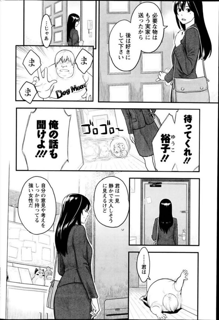 【エロ漫画】堕落してデブニートになったヒモ彼氏が別れを告げてきた彼女に最後のHを懇願し子宮に直接語り掛け肉棒説得!