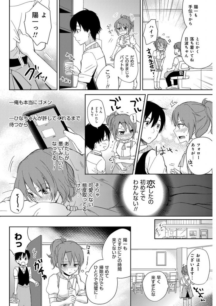【エロ漫画】可愛げや女らしさと無縁のJKが喫茶店のバイトを始めると学校の後輩男子に出会い初めての恋に戸惑いながら初H!
