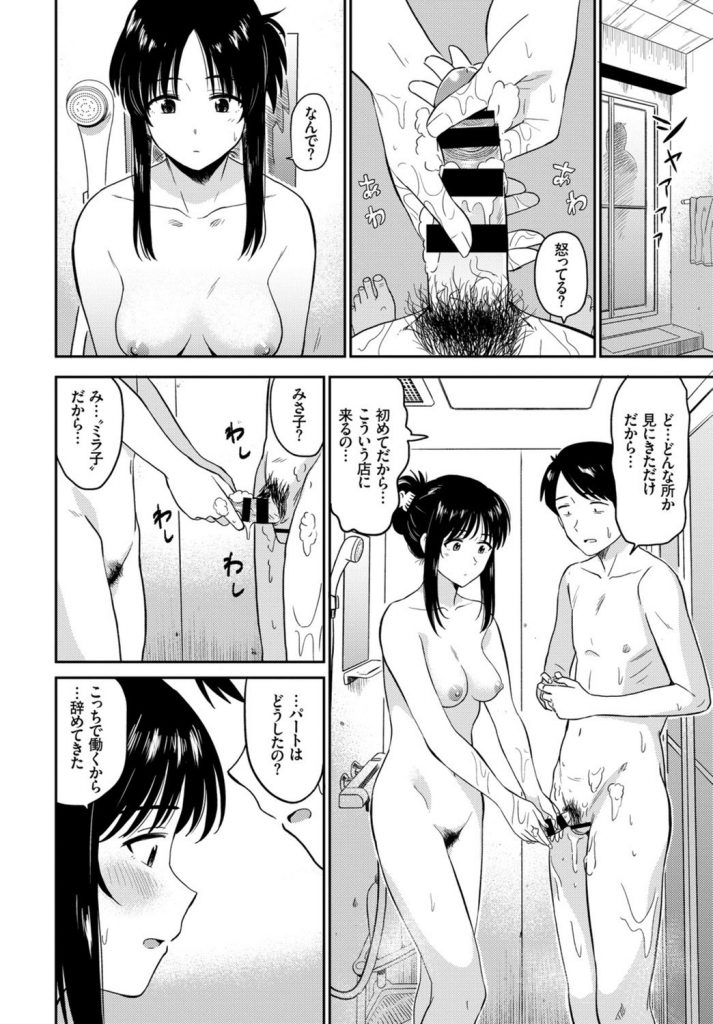 【エロ漫画】夫の借金返済するため風俗嬢として働きだした愛妻の店に偶々来店した夫が自分の不甲斐なさに号泣しながら本番!