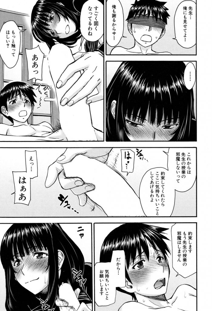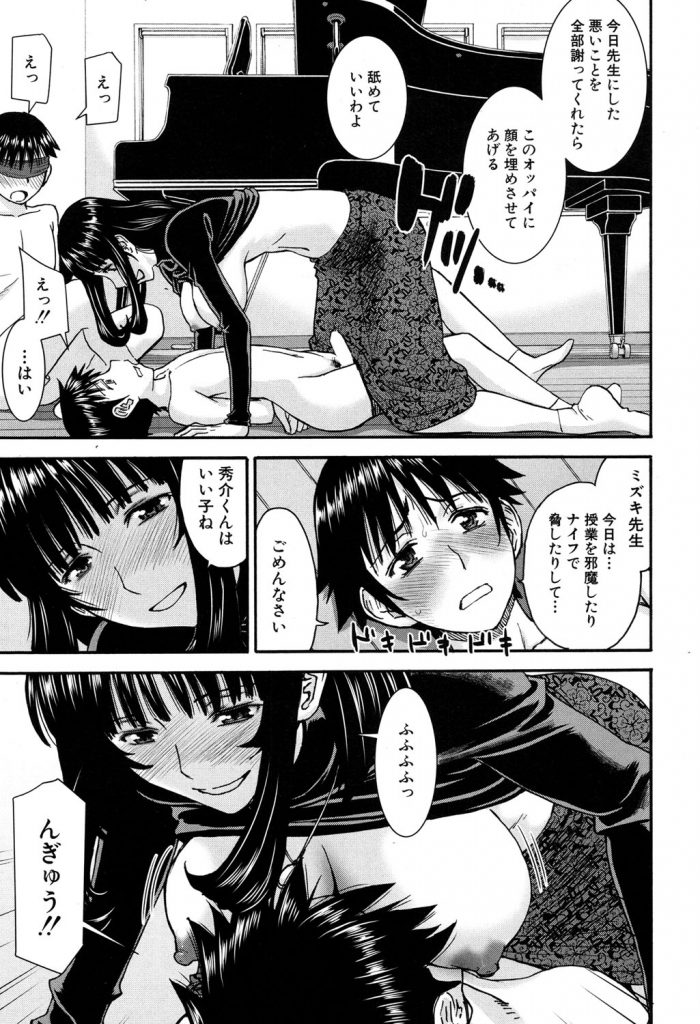 【エロ漫画】夜の林道でナイフで脅してきた教え子の悪童を返り討ちにする清楚な先生が反省を促すため性教育で筆下ろし!