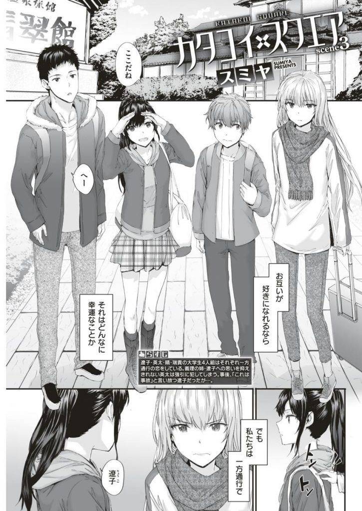【エロ漫画】四角関係の男女四人で旅館に泊まり好きな人に想いを伝えるJDが隣の部屋同士で喘ぎ声を聞きながら浴衣SEX! CA優等生友達の母親連続アクメ マイページに追加 マイページへ移動 四角関係の男女四人で旅館に泊まり好きな男に想いを伝える読モJDがチンポを咥えてそのまま騎乗位で生ハメしセックス開始!横の部屋に喘ぎ声が聞こえてきて辛そうにする男を今度はポニテJDが慰めようとして身体を捧げる!好きな男と結ばれたJD二人がお互いの嬌声を聞きながら激しい浴衣セックスで弄り合って膣内射精!四人の新しい関係が動き始める! 関連エロマンガ 全裸で鎖につながれ飢えた男性受刑者に囲まれ犯される元アイドルの死刑囚。バイブをねじ込まれ男たちにおっぱいを揉まれながら中出しレイプ 先生に薬物を飲まされ調教される彼氏とラブラブなJK。乳首ピアスをされて肉便器にされると彼を忘れて先生のチンポで堕ちてしまう 夫にバイブでイカされまくる義母。欲求不満な彼女と夫に隠れてセックスをしまくる息子はJKの義妹ともお風呂場でいちゃラブセックスする 義母の命令で親父たちに輪姦される姉。乳首を舐められ弟に無理やりクンニさせてザーメンまみれで中出しレイプされる 街中で通る男性にオナニー鑑賞をせがまれるドSなJDお姉さん。ディルドでフェラを強要させてヒールでアソコを踏み潰し逆レイプで中出しさせてあげる 住み込みで働く男性を性処理として働かせる欲求不満な人妻。セックス依存症のの母娘たちは彼とセックスしまくり中出しする ピアノレッスンで講師にセクハラを受け続けるお姉さん。後ろからおっぱいを揉まれ手マンをされると興奮してしまった彼女は講師のチンポをフェラして生ハメセックスをする 家主の親父にご奉仕状況される喫茶店を経営するメイド姿の未亡人。パイズリやクンニをして立ちバックで生ハメされて犯されアヘ顔で中出し CA優等生友達の母親連続アクメ コメントを残す コメントをキャンセル コメント 名前 email confirm* post date* 漫画に関係の無いコメントや荒らし行為はご遠慮ください。