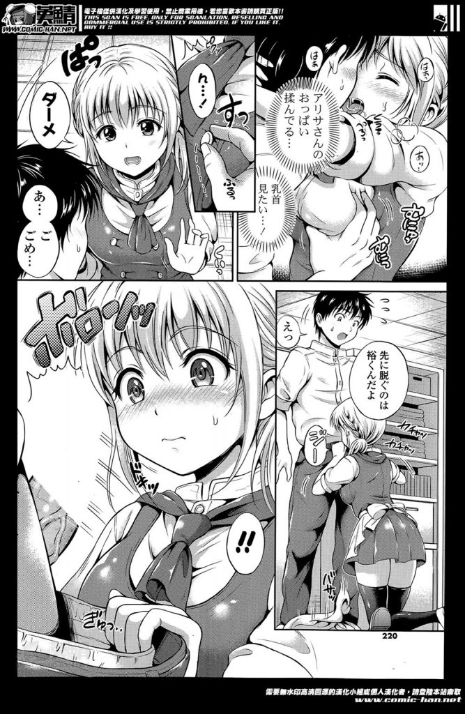 【エロ漫画】告白されて付き合った女子高生の可愛い彼女だが半年たっても初体験出来てないんです! 69イマラチオ正常位バック巨乳、バイブ、拘束、緊縛、バック、中出し熟女 マイページに追加 マイページへ移動 バイト終わりの事務室で奥手な彼氏に堪りかねたJK彼女が自らムード作ってくれたので為せば成る精神でチェリーボーイ脱出に挑む高校生男子!経験豊富だと思ってた彼女はなんとバージンで感動しつつ初セックスで中に出しました。 関連エロマンガ 【エロ漫画】初恋の従姉の家に行き綺麗になってたJDお姉ちゃんの一人H現場を目撃しそれならばと乱入したら初体験に発展! お互いの親同士不倫して離れ離れになった彼と雨の日に再会した幼馴染みのJK。互いの感情が抑えられずクンニやフェラをして性器を舐め合い濃厚いちゃラブセックスしちゃう 寝落ちした隙に炬燵の中でエッチな悪戯をされるお隣の人妻。気づいた彼女は手コキや素股をして生ハメいちゃラブセックスしちゃう 【エロ漫画】ローター挿入ノーパン露出デートに付き合わされる兄嫁が公園で他人に見られながら放尿すると素っ裸で青姦! 69イマラチオ正常位バック巨乳、バイブ、拘束、緊縛、バック、中出し熟女 コメントを残す コメントをキャンセル コメント 名前 email confirm* post date* 漫画に関係の無いコメントや荒らし行為はご遠慮ください。