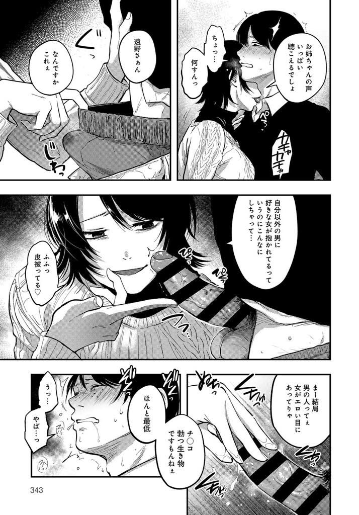 【エロ漫画】失踪した姉が売春してると突き止めた妹が姉の事が好きな男を逆レイプし逆鱗に触れ首絞めHで自分を罰する! オナホールみよしムチムチ先輩先輩・後輩同棲巨乳、バイブ、拘束、緊縛、バック、中出し マイページに追加 マイページへ移動 失踪した芋臭かった姉が男に媚びてオッサン相手に売春してると探偵を雇って知った妹JK!姉の事が好きだった童貞の先輩をラブホに呼び出して覗き穴からチンポ狂いになった姉の痴態を覗かせる!そして、ショックを受けている彼を襲って逆レイプしてワザと挑発し逆鱗に触れる!ブチ切れた彼に罰を与えてもらおうと更に煽って首絞めセックスで犯される! 関連エロマンガ 全裸で鎖につながれ飢えた男性受刑者に囲まれ犯される元アイドルの死刑囚。バイブをねじ込まれ男たちにおっぱいを揉まれながら中出しレイプ 先生に薬物を飲まされ調教される彼氏とラブラブなJK。乳首ピアスをされて肉便器にされると彼を忘れて先生のチンポで堕ちてしまう 夫にバイブでイカされまくる義母。欲求不満な彼女と夫に隠れてセックスをしまくる息子はJKの義妹ともお風呂場でいちゃラブセックスする 義母の命令で親父たちに輪姦される姉。乳首を舐められ弟に無理やりクンニさせてザーメンまみれで中出しレイプされる 街中で通る男性にオナニー鑑賞をせがまれるドSなJDお姉さん。ディルドでフェラを強要させてヒールでアソコを踏み潰し逆レイプで中出しさせてあげる 住み込みで働く男性を性処理として働かせる欲求不満な人妻。セックス依存症のの母娘たちは彼とセックスしまくり中出しする ピアノレッスンで講師にセクハラを受け続けるお姉さん。後ろからおっぱいを揉まれ手マンをされると興奮してしまった彼女は講師のチンポをフェラして生ハメセックスをする 家主の親父にご奉仕状況される喫茶店を経営するメイド姿の未亡人。パイズリやクンニをして立ちバックで生ハメされて犯されアヘ顔で中出し オナホールみよしムチムチ先輩先輩・後輩同棲巨乳、バイブ、拘束、緊縛、バック、中出し コメントを残す コメントをキャンセル コメント 名前 email confirm* post date* 漫画に関係の無いコメントや荒らし行為はご遠慮ください。