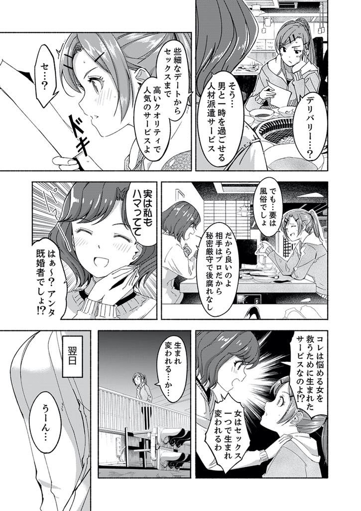 【エロ漫画】女子力皆無な仕事一筋のプライドが高いキャリアウーマンがデリバリー風俗のチャラ男とデートして心を開く!