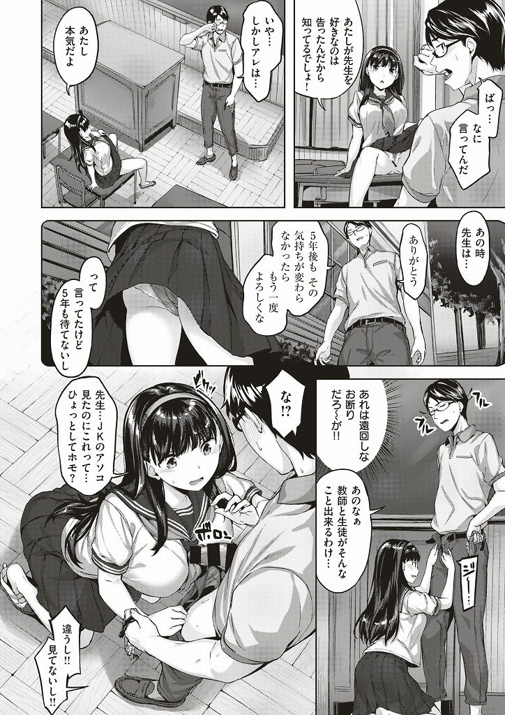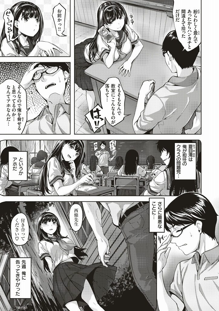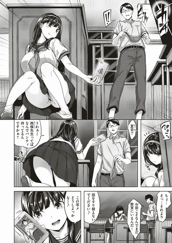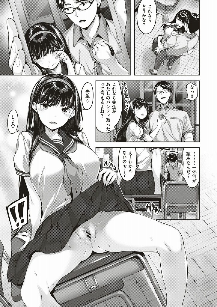 【エロ漫画】好きな先生を罠に嵌めてノーパン誘惑する問題児の巨乳JKがふにゃちんを強制勃起させて教室でいちゃラブ淫行!