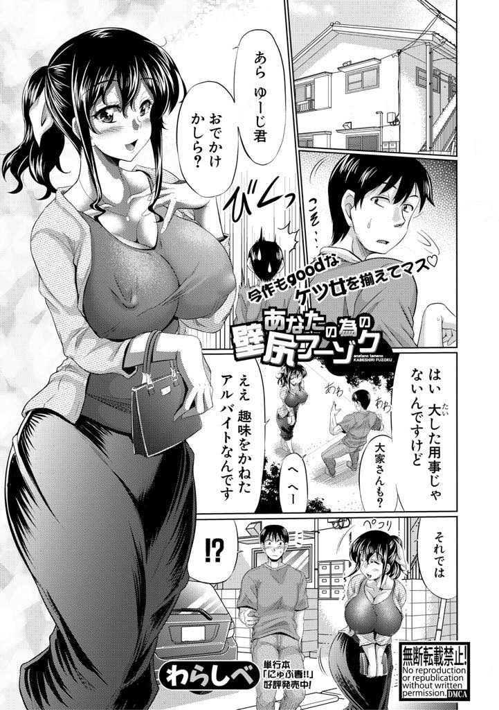 【エロ漫画】壁尻専門フーゾク店で理想のケツを見つけた風俗童貞が風俗嬢が憧れの大家さんと気づき容赦なくチンポ挿入!