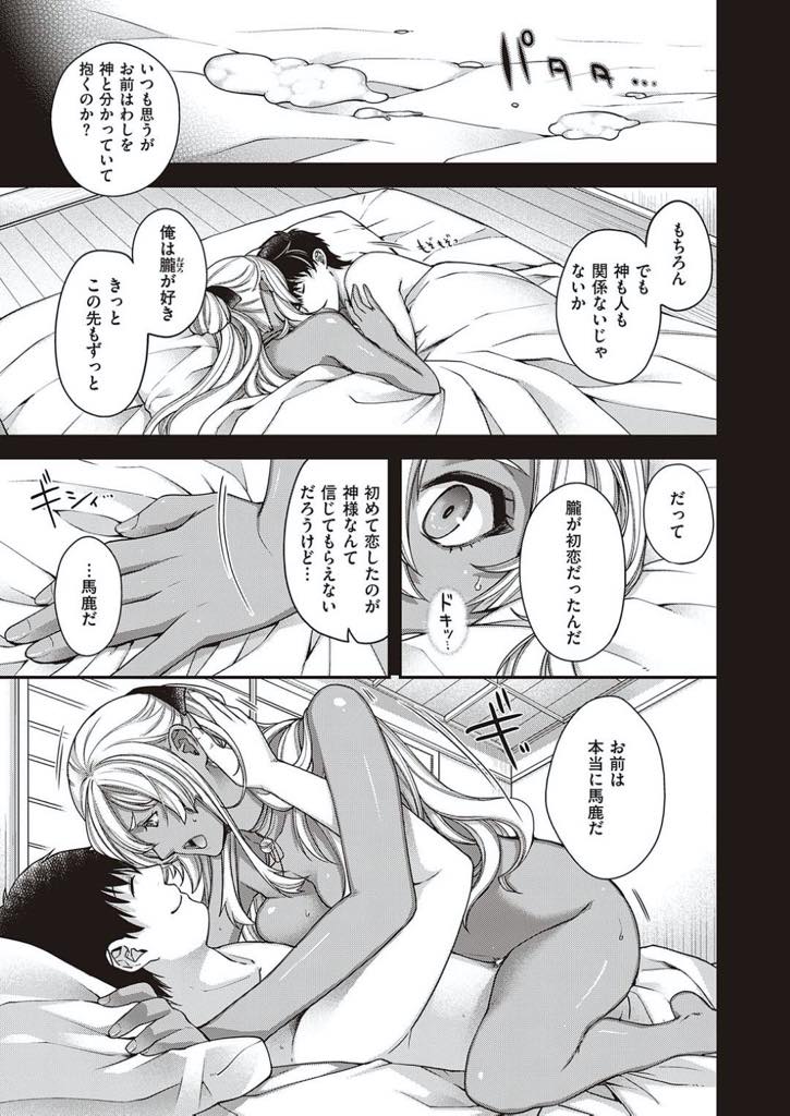 【エロ漫画】境内に足繁く通う少年と心を交わし初めた地主神である彼女、次第に身体も重ね合わせるが超えられない壁が褐色美女に恋の苦悩を与える マイページに追加 マイページへ移動 地主神である彼女は、境内で自分の事が視える一人の男と出逢う。いつしか彼女は男に『朧』と呼ばれるようになり、自然と男女の関係になった二人。しかし、神様と人間であるがゆえに越えることができない壁が二人を阻み 関連エロマンガ 全裸で鎖につながれ飢えた男性受刑者に囲まれ犯される元アイドルの死刑囚。バイブをねじ込まれ男たちにおっぱいを揉まれながら中出しレイプ 先生に薬物を飲まされ調教される彼氏とラブラブなJK。乳首ピアスをされて肉便器にされると彼を忘れて先生のチンポで堕ちてしまう 夫にバイブでイカされまくる義母。欲求不満な彼女と夫に隠れてセックスをしまくる息子はJKの義妹ともお風呂場でいちゃラブセックスする 義母の命令で親父たちに輪姦される姉。乳首を舐められ弟に無理やりクンニさせてザーメンまみれで中出しレイプされる 街中で通る男性にオナニー鑑賞をせがまれるドSなJDお姉さん。ディルドでフェラを強要させてヒールでアソコを踏み潰し逆レイプで中出しさせてあげる 住み込みで働く男性を性処理として働かせる欲求不満な人妻。セックス依存症のの母娘たちは彼とセックスしまくり中出しする ピアノレッスンで講師にセクハラを受け続けるお姉さん。後ろからおっぱいを揉まれ手マンをされると興奮してしまった彼女は講師のチンポをフェラして生ハメセックスをする 家主の親父にご奉仕状況される喫茶店を経営するメイド姿の未亡人。パイズリやクンニをして立ちバックで生ハメされて犯されアヘ顔で中出し コメントを残す コメントをキャンセル コメント 名前 email confirm* post date* 漫画に関係の無いコメントや荒らし行為はご遠慮ください。