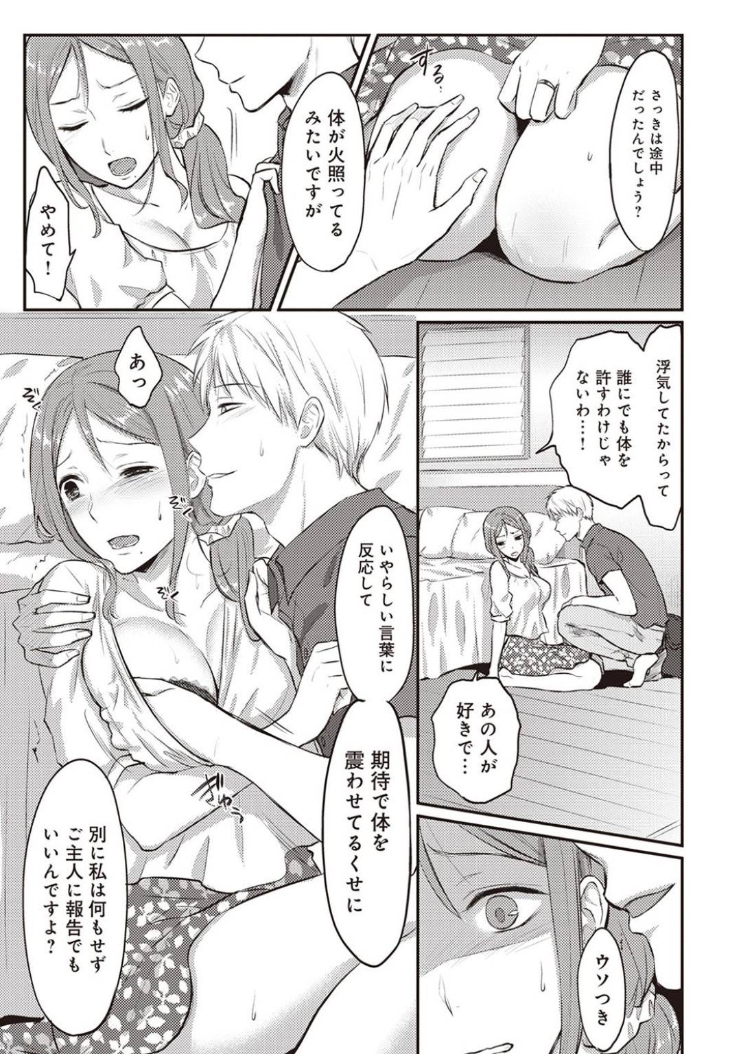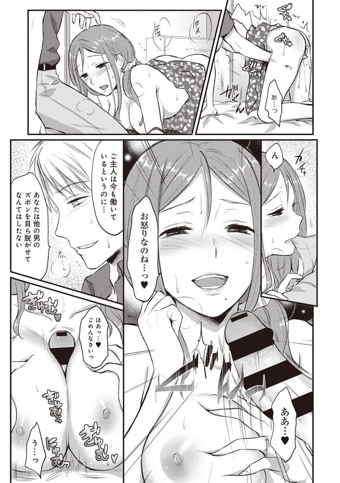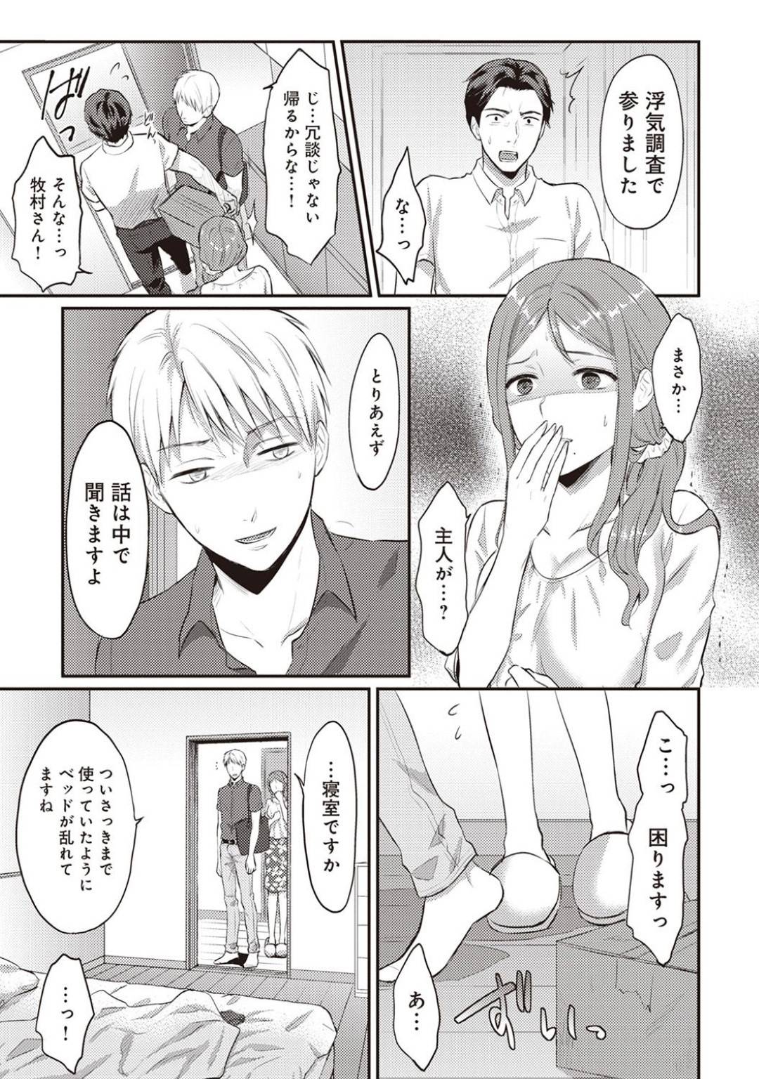【エロ漫画】夫に黙って不倫中の妻は、探偵を装ったストーカーに家に入られ、間男がそそくさと帰ったあと生ハメレイプされて中出しされてイク!