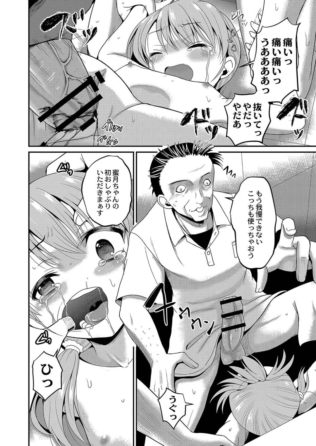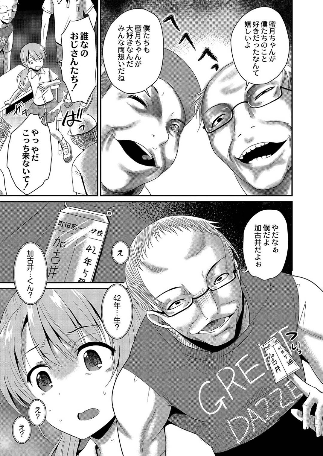 【エロ漫画】好きな人と両想いになれるアプリで突然異空間に飛ばされたロリ少女は、不気味なおじさんたちに無理やり生ハメ乱交レイプされて快楽堕ち!