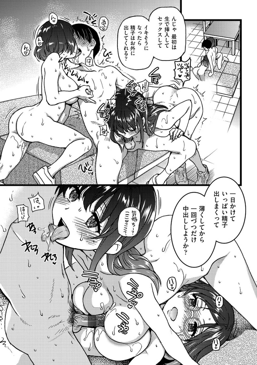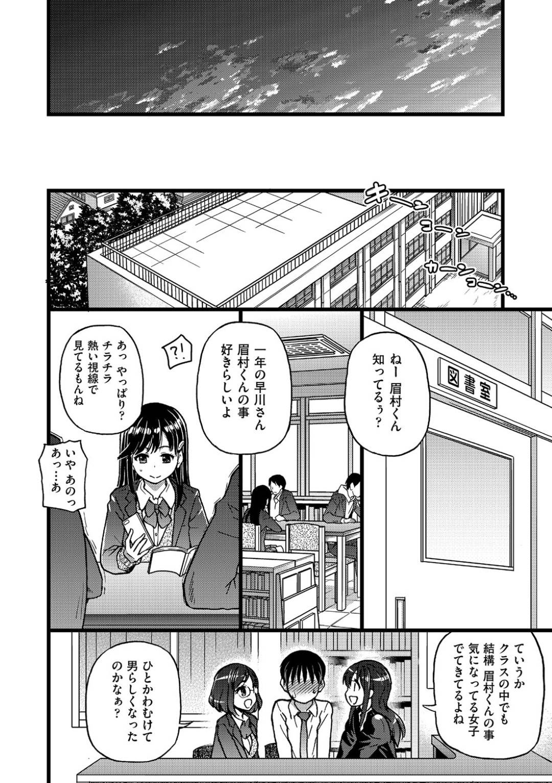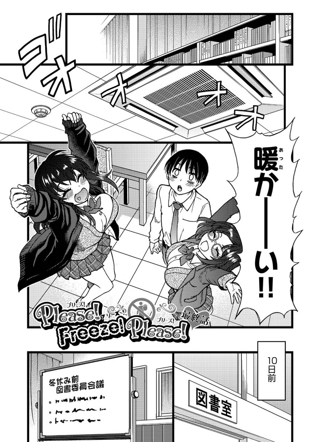 【エロ漫画】図書館の暖房設置工事が冬休中に行われることになり書棚の移動などを手伝う有志の募集に手を上げた束見さん、飯田橋さん、眉村くんの3人。もちろん3人でセックスを楽しむために自ら志願したのだがさらに特別なことに!?カバンの中にたくさんゴムを用意してきた眉村くんに…