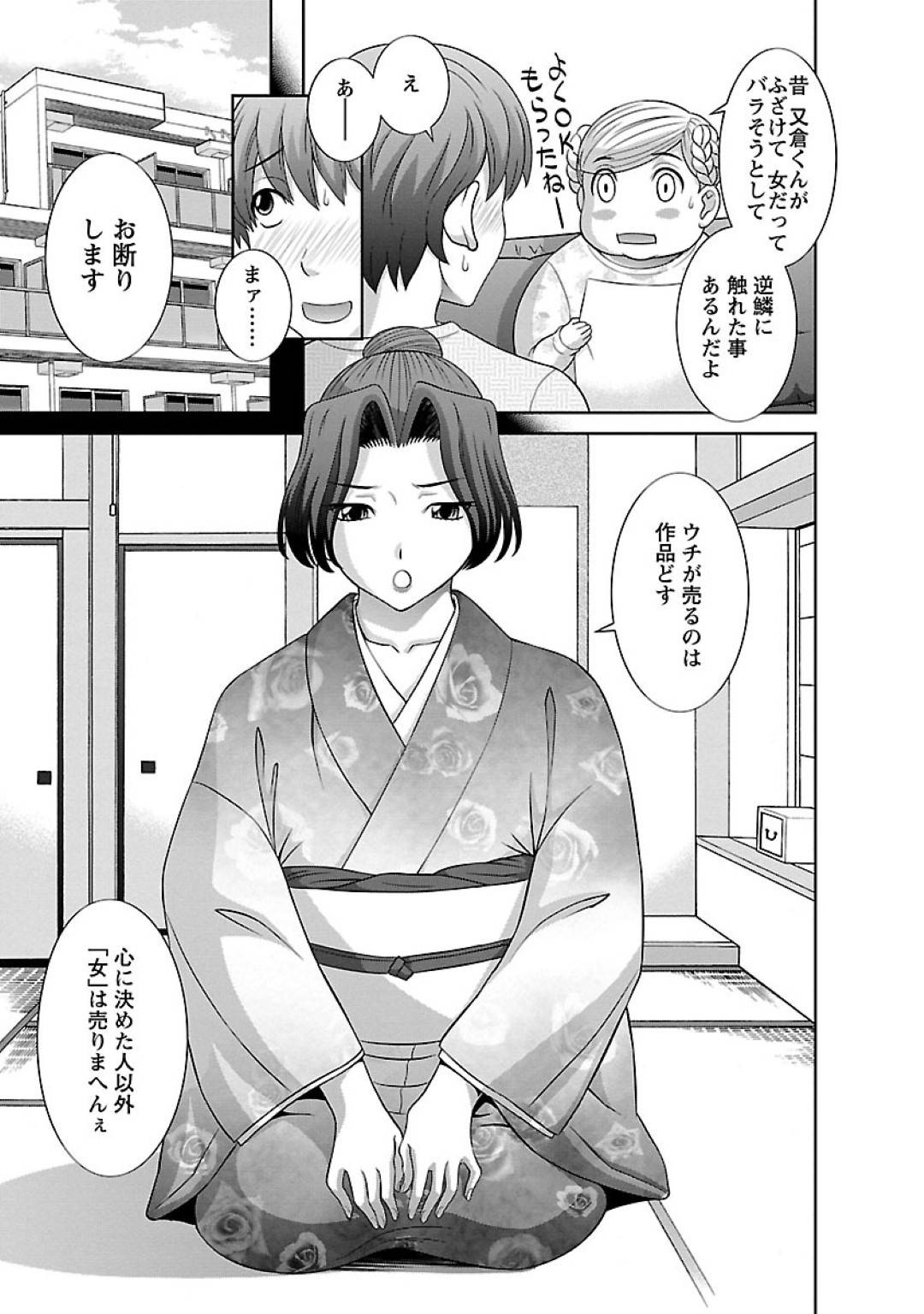 【エロ漫画】売れるエロ漫画を作成するため有名なエロ漫画家を口説き落とすことを託された編集部の男性。浴衣姿で色っぽいエロ漫画家は即尺フェラで自らの快楽を満たそうと喘ぎまくりの中出しセックスで承諾してもらうことにw