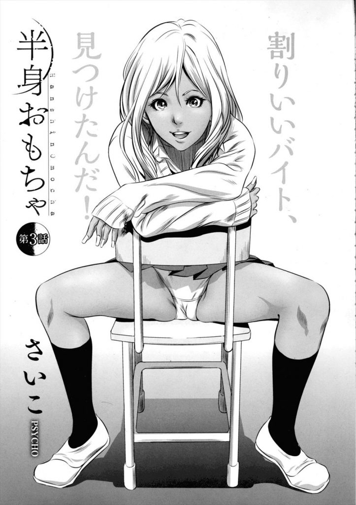 【エロ漫画】壁からお尻を出すだけの楽なバイトをする黒ギャルが客で来た実父に子宮をガン突きされマジイキ!