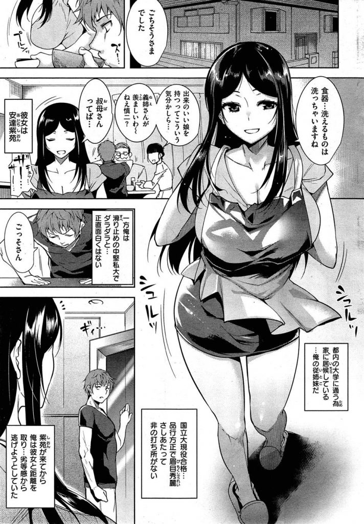 【エロ漫画】国立大に通う品行方正な真面目女子大生の従姉妹が居候してるんだが・・・