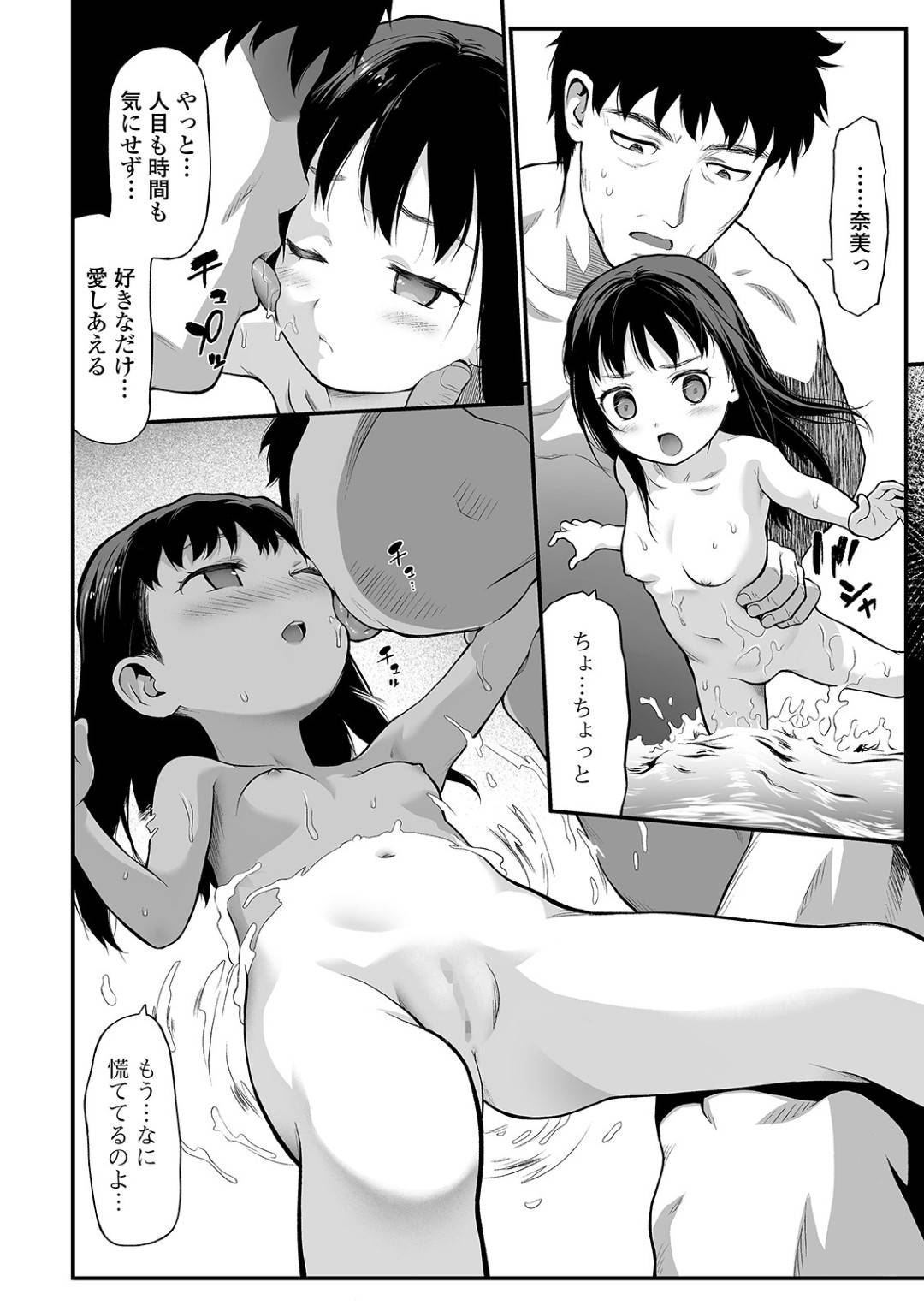 【エロ漫画】大好きなお父さんと初めての温泉旅行にきたJS娘…側から見ると仲の良い親子に見えるがは母親の目を盗み旅先でふたりだけで近親相姦中出しセックスしまくる!