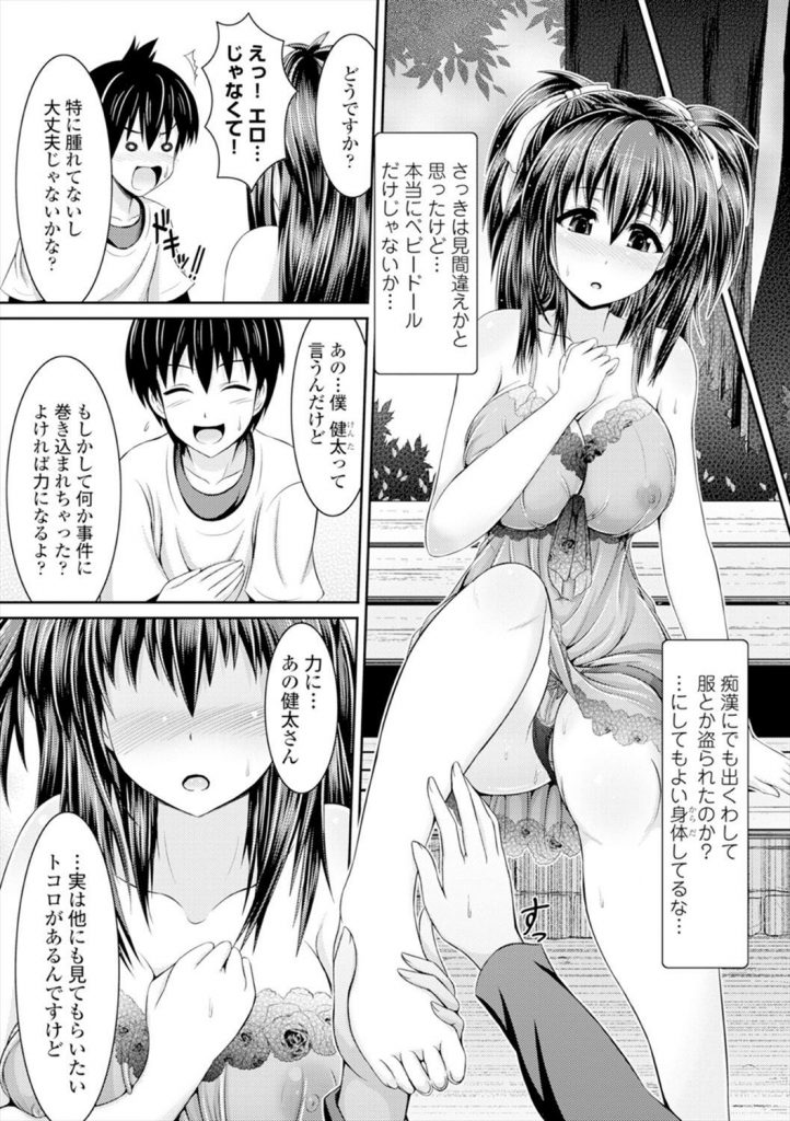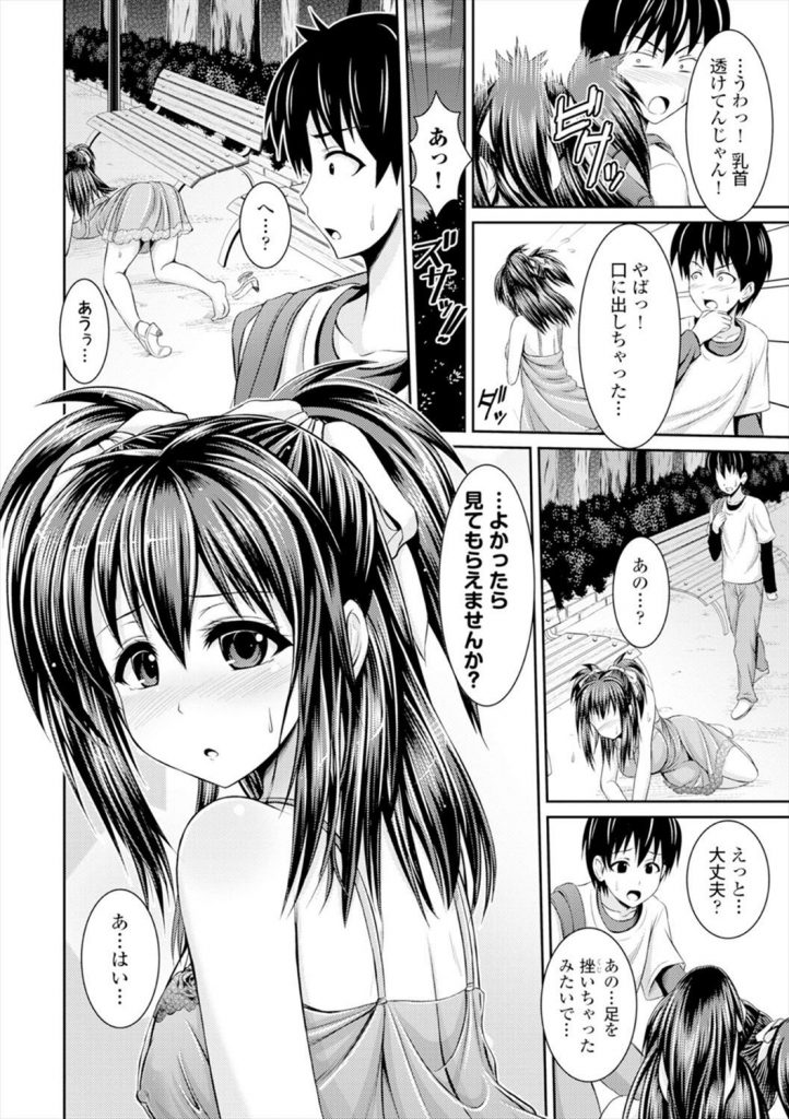 【エロ漫画】夜の公園で乳首が透けたベビードール姿の露出狂痴女を見つけた男が青姦羞恥SEXで牝犬ゲット!