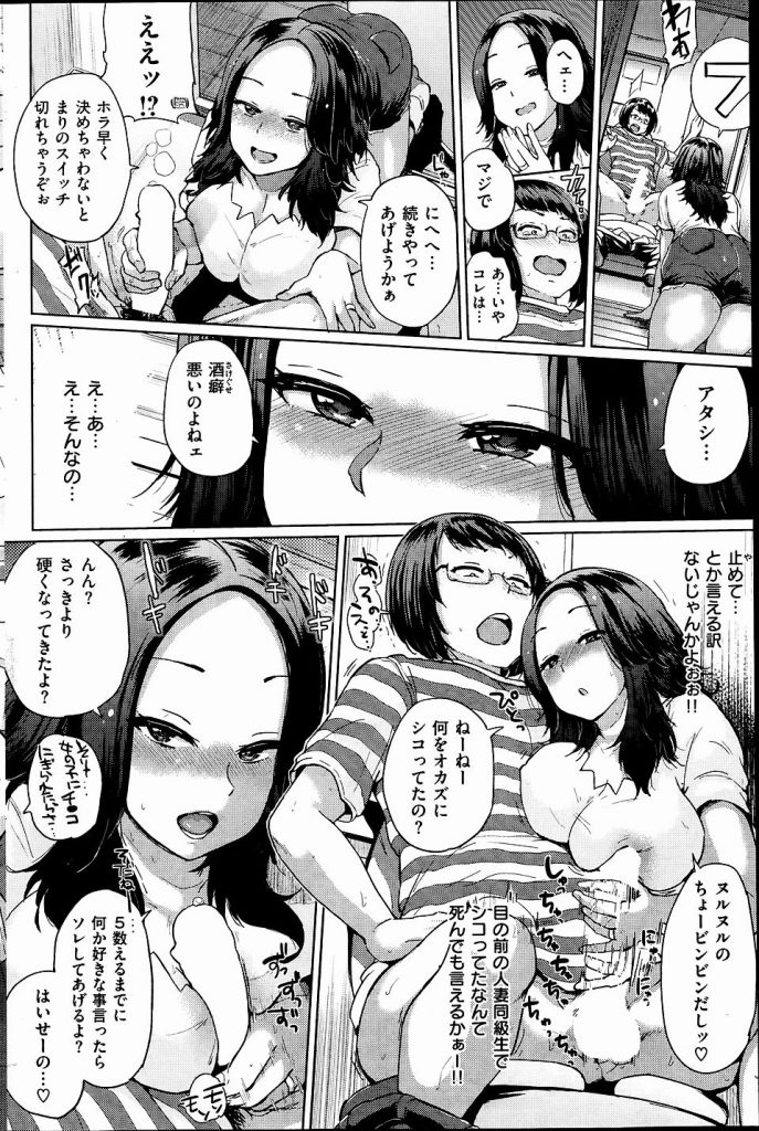 【エロ漫画】同窓会後に自宅で二次会し人妻同級生をオナネタにトイレでオナニーする独身男だが程なく乱交に発展! 69アマゾネスお風呂ムチムチロリコン催淫薬寝込みフェラ マイページに追加 マイページへ移動 同窓会が終わり二次会に独身男の自宅で呑みなおす男女4人だが寝静まった所で人妻同級生をオナネタにトイレでオナニーしているのを見られた男に酔っ払いの人妻が積極的に手コキで迫り子供を産んで黒ずんだ乳輪パイで扱かれ亀頭を咥えられると堪らず射精するが他のメンバーも情事に加わり乱交プレイで妊娠済マンコに膣内射精! 関連エロマンガ おじさんたちを相手に援交しまくるビッチJKたち。コンビプレイでWフェラや顔面騎乗など巧みなコンビプレイを披露し中出しさせまくる 結婚披露宴で公開セックスをするウェディング姿の人妻。マイクを持ったまま騎乗位で生ハメセックスをするとそれを見ていた人達も乱交パーティー ヤリモクナンパスポットのに来るミスキャンパス モデル。お目当ての男性を見つけ逆ナンパして輪姦される 【エロ漫画】会社の同僚女子と女だらけの温泉旅館に来た男が疲れを癒し羽を伸ばして無礼講で乱交ハーレム! 彼女の家に家族は遠分帰ってこないという確認を取る彼氏。そのうえで彼女の家に上がり込む事にした。早速彼女にエッチを迫ります。彼女の友達が電話をしたいというので、電話をしていたら彼氏が彼女の体を触り始めます。彼女は感じている声を押し殺して平静を装います。実は、友達も同様にエッチしながら電話をかけていて心理戦が始まります。 隣人のJKと友達のギャルとEVに閉じ込めらて男が買ったエロ本を見られて、騎乗位でパイズリフェラ汗だくマン汁まみれで3P! 早漏彼氏をエロ動画を見ながら性指導するモデル女子。生ハメいちゃラブセックスで連続射精 スーパー銭湯で男性のあかすりを手伝ってあげる新人の天然女性スタッフ。乳首を揉みしだき、69で胸を弄り、膣肉で恥辱を晴らしながら生ハメセックスでアクメ堕ち 69アマゾネスお風呂ムチムチロリコン催淫薬寝込みフェラ コメントを残す コメントをキャンセル コメント 名前 email confirm* post date* 漫画に関係の無いコメントや荒らし行為はご遠慮ください。