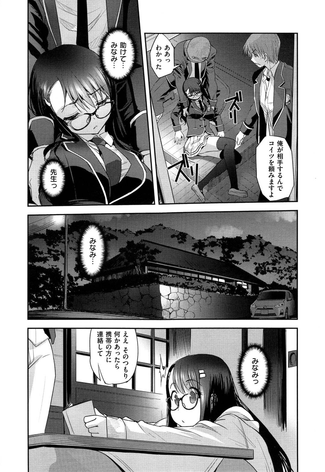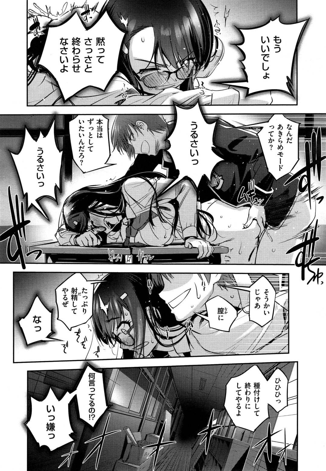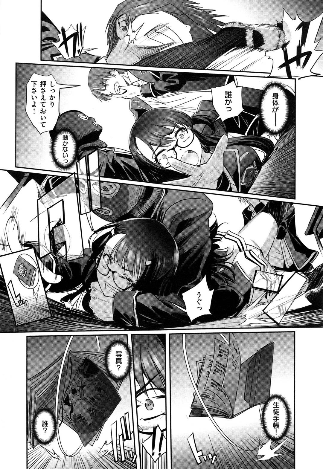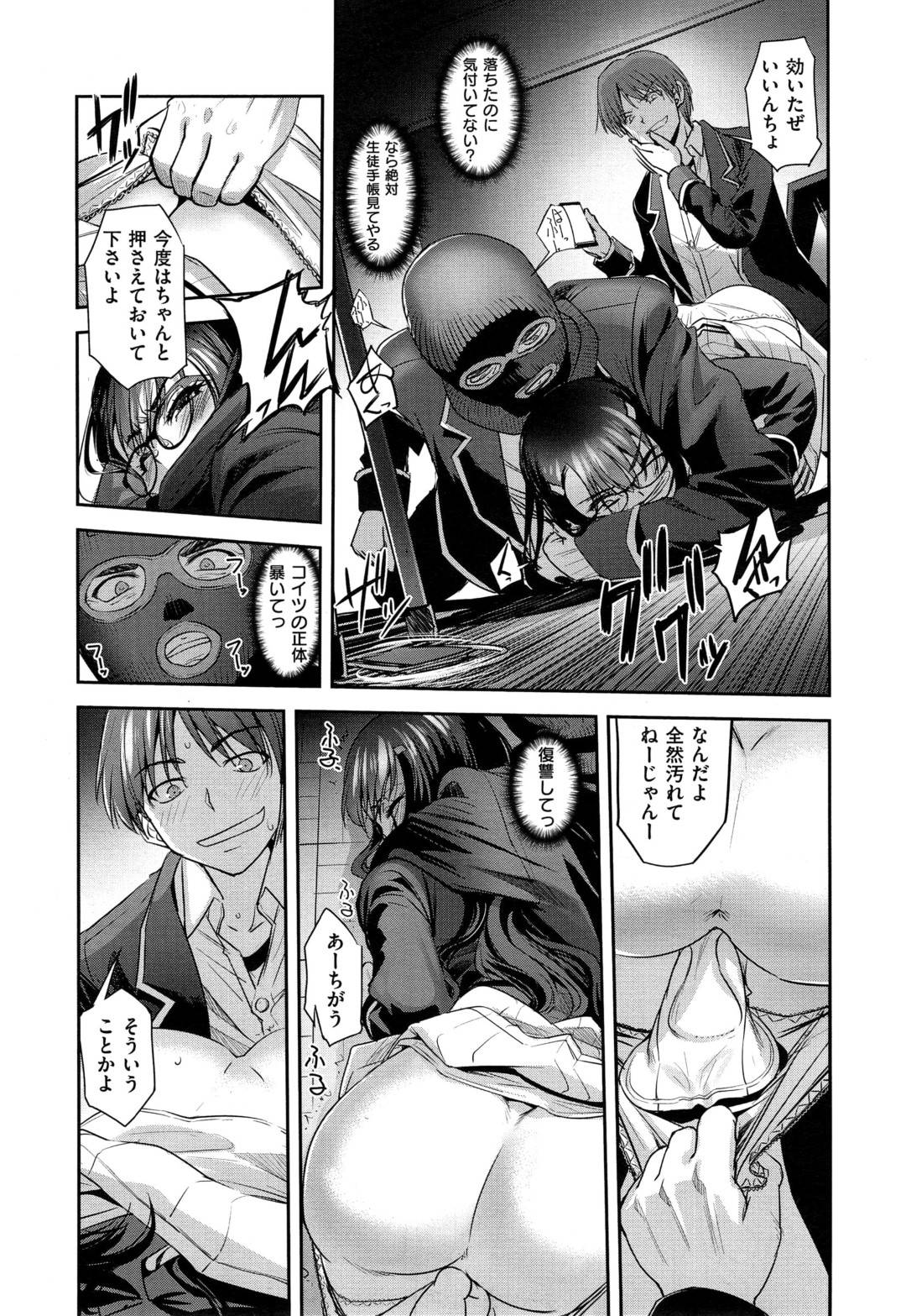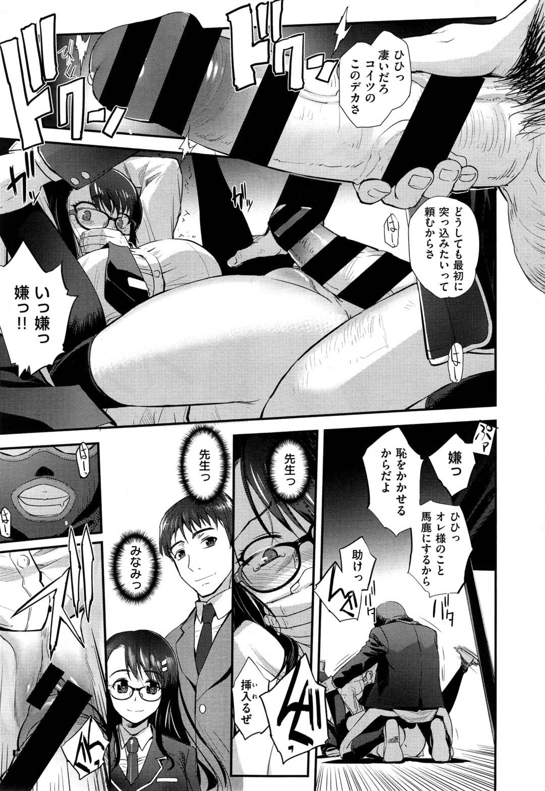 【エロ漫画】夜の学校で覆面をした男たちに襲われてしまった清楚系眼鏡JK…スタンガンで動けなくされた彼女は生理中にも関わらず巨根を生挿入されて流血レイプを受ける事となる!