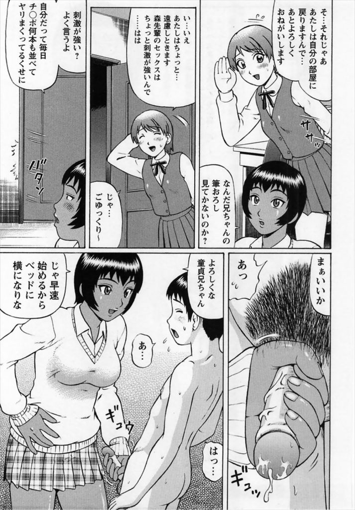 【エロ漫画】妹にビッチな色黒の先輩JKをセフレとして紹介してもらった童貞の兄が初めてのセックスで壊される! タマ舐めバックビッチムチムチ巨乳、バイブ、拘束、緊縛、バック、中出し谷間 マイページから外す マイページへ移動 妹が連れて来たビッチな色黒の先輩JKの前でシコシコして射精するのを見せ品定めされる童貞の兄がセフレになり早速筆おろしを始めて顔面騎乗でオマンコで圧迫されながら包茎勃起チンポを擦られ即発射すると初めてのセックスで何度も射精しながら騎乗位で気絶しながらも勃起したチンポを使われ壊される! 関連エロマンガ 弟に頼まれ兄とセックスすることになった性欲が強い嫁。大量のコンドームを使ってセックスをしまくる コンビニで立ち話をしているとプロダクションに人たちに声をかけられ媚薬入のジュースを飲まされる少女たち。トロ顔で乳首責めやクンニをされて生ハメセックスでレイプされると絶頂アクメ堕ちしちゃう 【エロ漫画】レンタルビデオ店に家族の会員証を使ってAVを借りに来た童貞中坊をお仕置きセックスするクロギャル店員! 【エロ漫画】休日になると出会い系やSNSで男漁りする地味でマジメなOLがピュアな美少年に釣られ兄のキモオタを筆おろし! 【エロ漫画】公園でSEXを覗いてセンズリしてた少年が筋肉質なお姉さんに木に縛られて手コキされマンコで扱き続けられる! クリスマスの日お金持ちの男子生徒に頼まれ思い出作りに付き合うJK。水に媚薬を忍ばされ熟睡してしまった彼女にを手マンをして正常位で生ハメして筆下ろしさせちゃう 【エロ漫画】告白されて断ったゼミの男子にバイト先のデリヘルで偶然指名された優等生JDは、ロボットのふりをしてアナルセックスしてケツアクメ タマ舐めバックビッチムチムチ巨乳、バイブ、拘束、緊縛、バック、中出し谷間 コメントを残す コメントをキャンセル コメント 名前 email confirm* post date* 漫画に関係の無いコメントや荒らし行為はご遠慮ください。