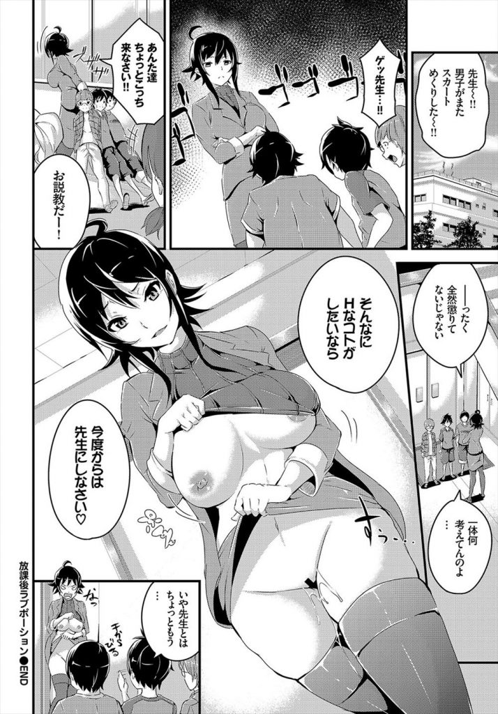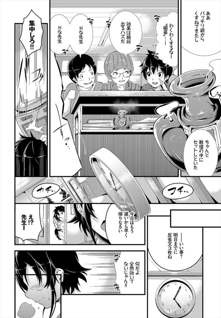 スカートめくりにエロ本の持ち込みをする問題児のエロガキ三人組がHなイタズラで教卓に媚薬のお香を焚いて臭いを嗅がせると休憩室で火照った体を一人エッチで慰める美人教師を見つけてケツアナやオマンコを子供の容赦ない責めで熱くするとザーメン掛けられ淫乱メス化した美人教師は子供チンポをおねだりしてケツアナとオマンコに同時挿入!