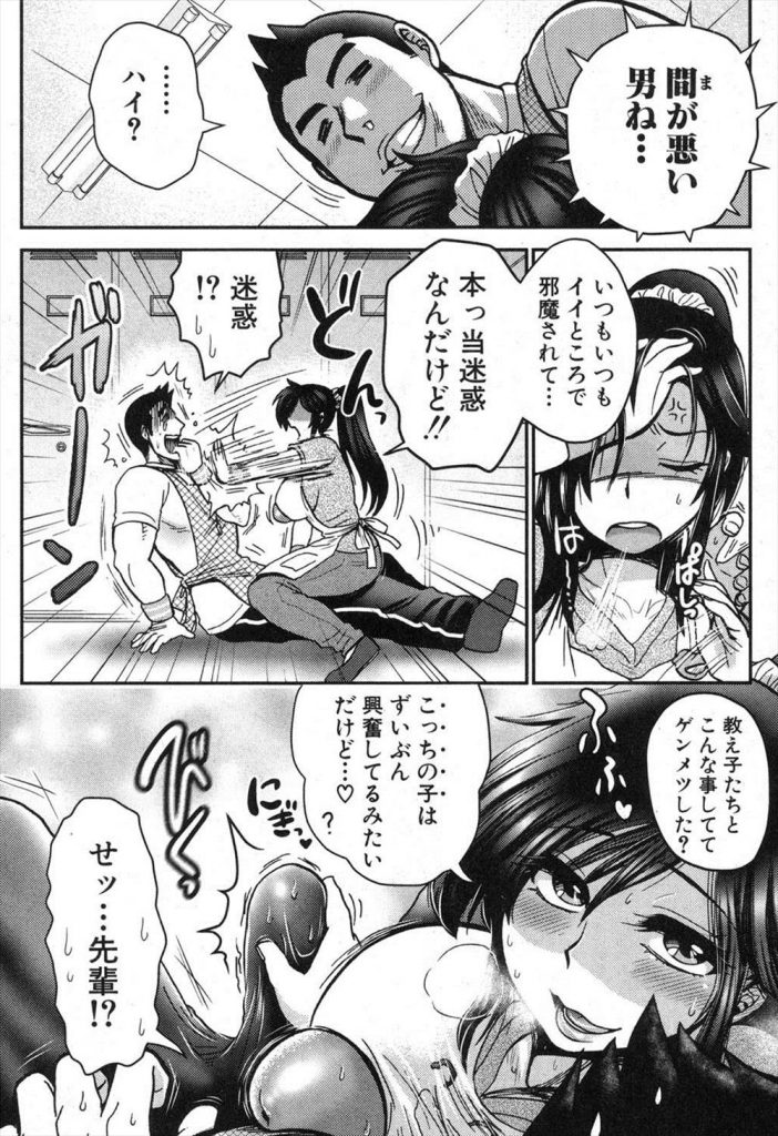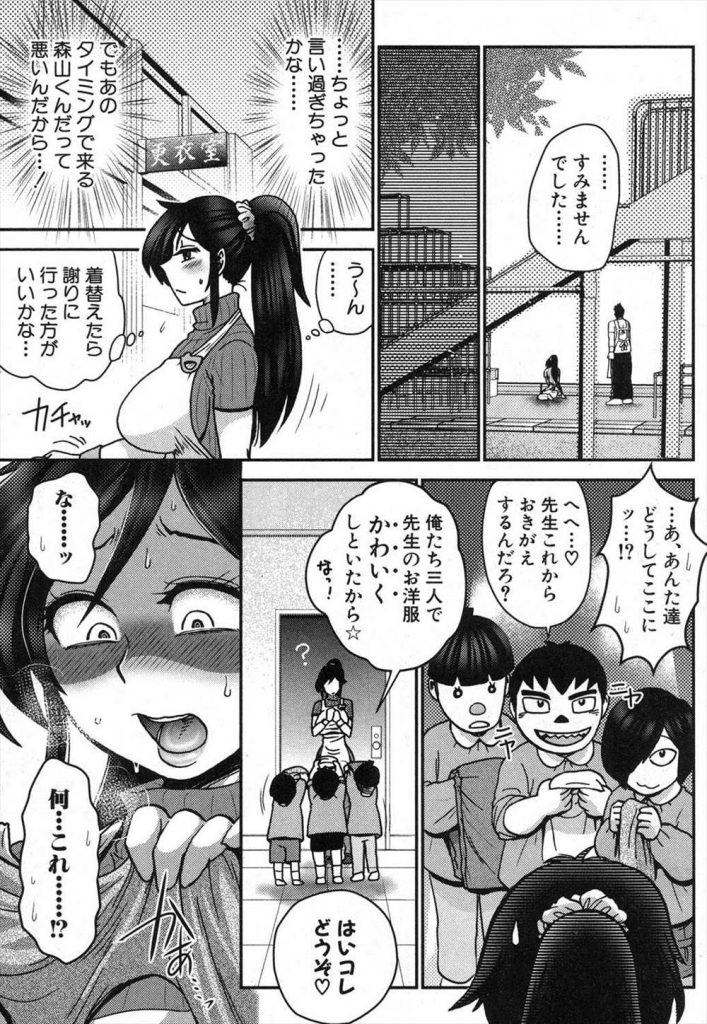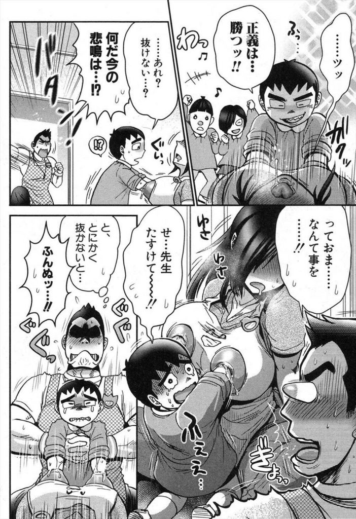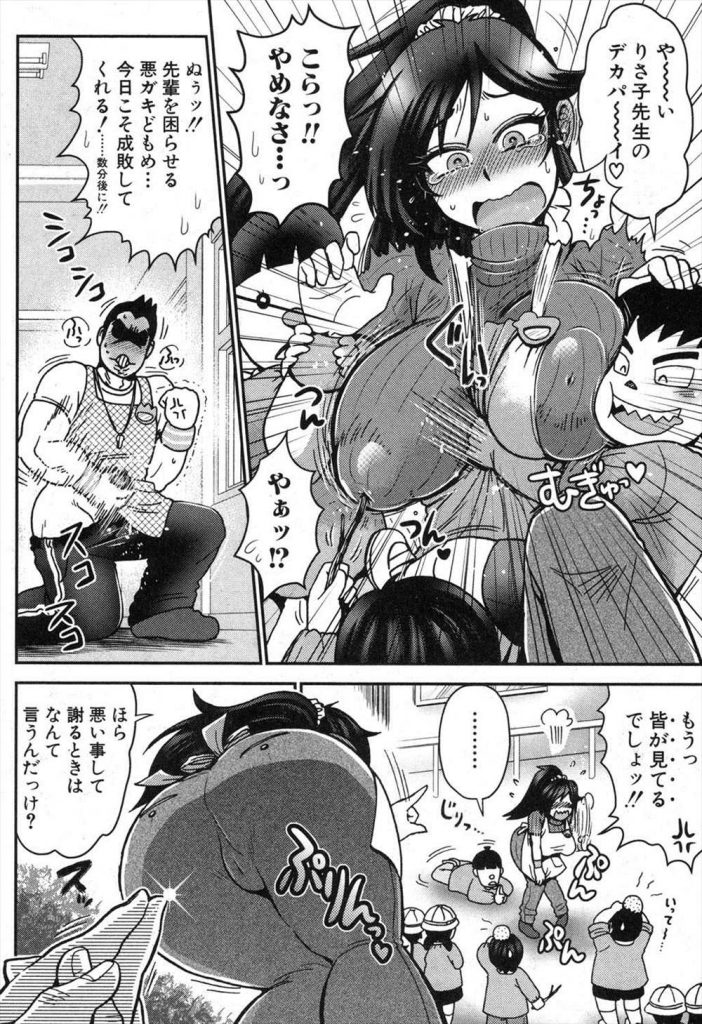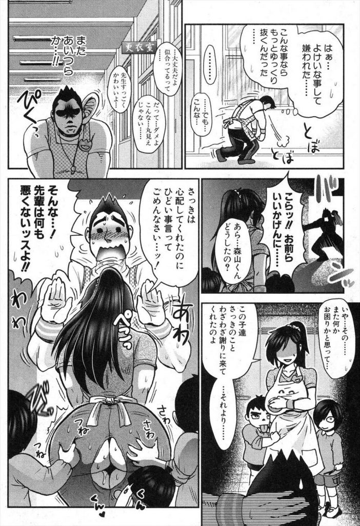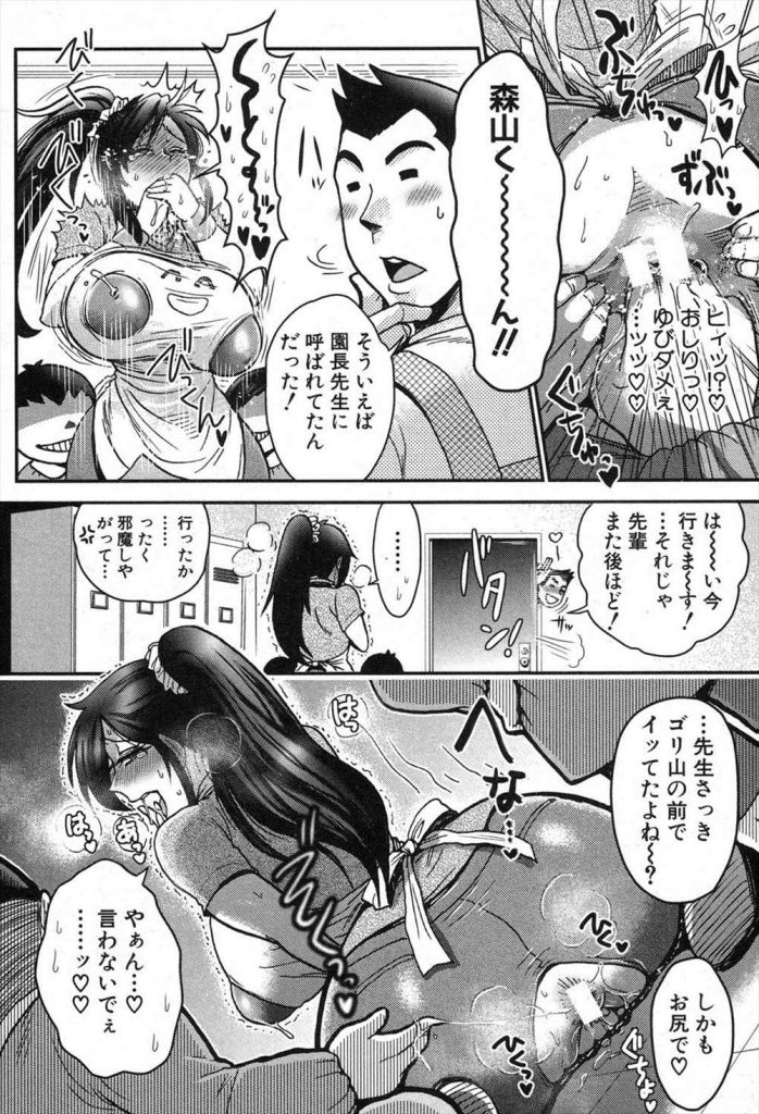 【エロ漫画】園児と戯れる変態保育士がオッパイ穴あきエプロンで膣に肉棒アナルとニップルフィストで4穴アクメ!