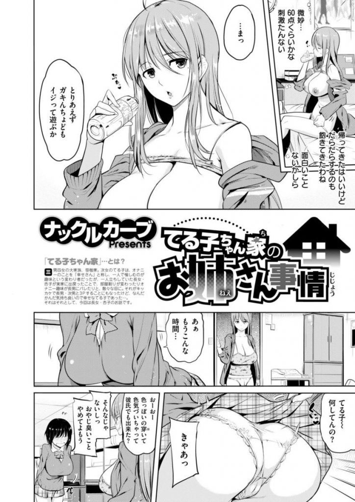 【エロ漫画】妹のパンツでオナッてた弟のがきんちょチンポをフェラして大人の女の味を教え込む色情狂の巨乳アネ! ムチムチロリコン巨乳、バイブ、拘束、緊縛、バック、中出し巨尻快楽堕ち誘惑 マイページに追加 マイページへ移動 成長期の妹とお風呂に入りムラムラが止まらずパンツを匂いながらセンズリしてる弟を見た色情狂の巨乳アネが治療と称して包茎のがきんちょチンポを手コキしてフェラで精液を搾り取るとオマンコを見せてチンポを咥えこみ擦りあげると中出しから抜かずの連続セックスで更に残ったザーメンを絞って大人の女の味を教え込み姉弟筆おろし! 関連エロマンガ 【エロ漫画】兄に性処理道具として扱われ毎日のようにエッチな事をされるむっちり妹JK…従順で淫乱な彼女はご奉仕フェラしたり、騎乗位や正常位で中出しセックスしまくる! 【エロ漫画】ロリコンたちに電車で輪姦されるロリ少女…抵抗できない内気な少女は男たちの性処理道具として中出し集団レイプ! 変態オジサンのチンポに無我夢中な女子校生2人…Wフェラチオから騎乗位や立ちバックで交互にアクメ堕ちしちゃう3Pセックス! 姉の旦那の世話中にエロ本を見つけたのがバレて欲情レイプされる義妹…欲望のままクンニ責めからの正常位浮気セックスで中出しされる! イチャラブしている新人ナースと患者にお仕置きをするビッチな変態ナース…2人に生ハメセックスをさせながらディルドをで3Pセックスする 男性をホテルに誘い援交するロリ系の美少女たち…Wフェラで生ハメしながら3Pでイチャラブセックスする! ブルマフェチの会長に土下座されてブルマを着るロリ巨乳娘…手マンで濡れ濡れにされてから正常位やバックでの着衣セックスで中出しされる! 大好きな弟が彼女のものになる前に犯したい美人なお姉ちゃん…ためらう弟に無理やり騎乗位挿入から禁断の近親相姦逆レイプする! ムチムチロリコン巨乳、バイブ、拘束、緊縛、バック、中出し巨尻快楽堕ち誘惑 コメントを残す コメントをキャンセル コメント 名前 email confirm* post date* 漫画に関係の無いコメントや荒らし行為はご遠慮ください。
