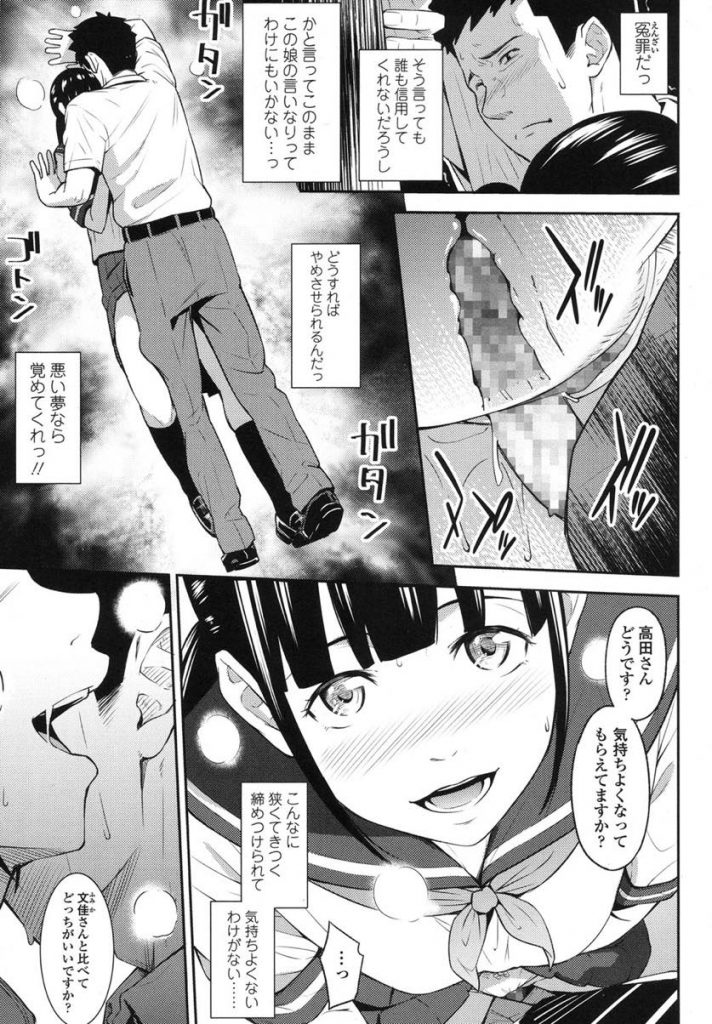 【エロ漫画】地味で大人しそうなJKを痴漢から救った男がお礼に痴女行為され電車内で本番し冤罪で脅され不倫関係に!