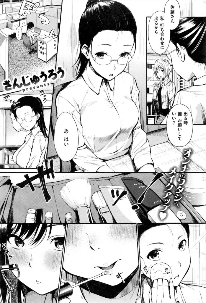 【エロ漫画】地味なOLがメイクアップして会社で痴態の自撮り撮影していると好きな男に目撃されハメ撮りで悶え狂う!