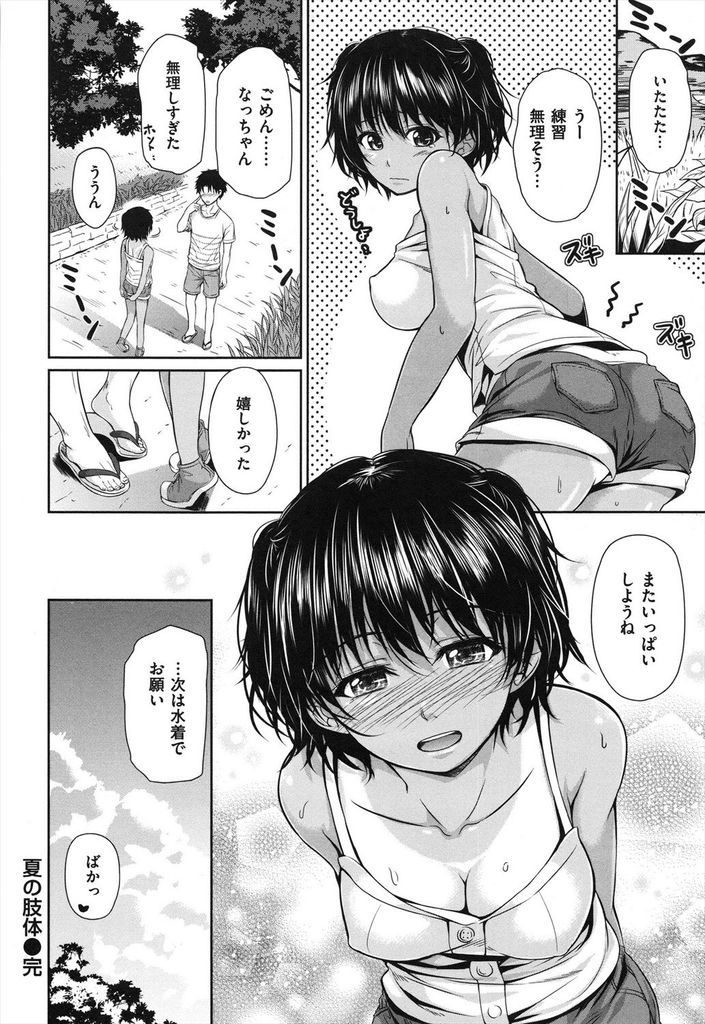 【エロ漫画】大人の女に成長していく幼馴染の部屋着姿に目を奪われ日焼け跡のエロい引き締まった身体を愛撫してイチャラブ!